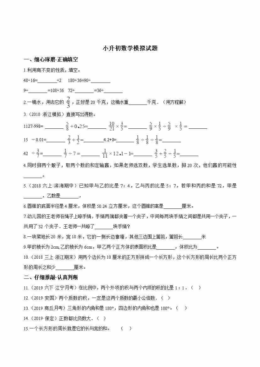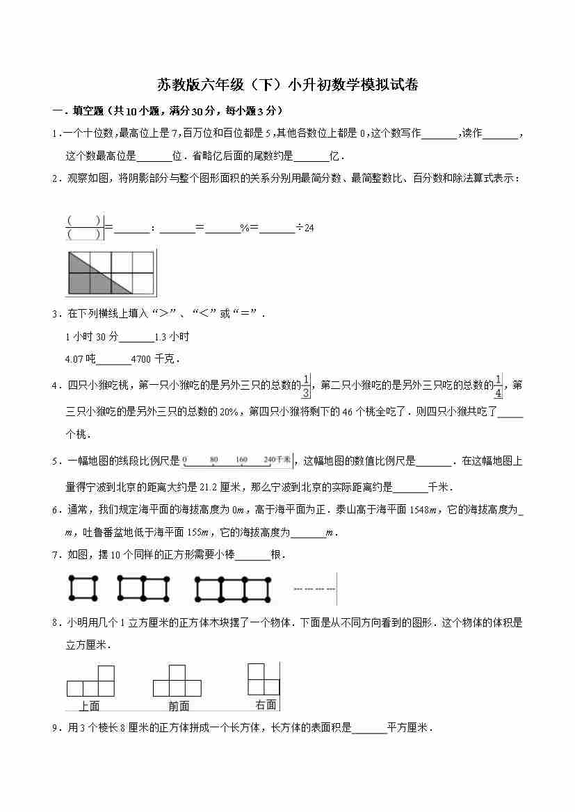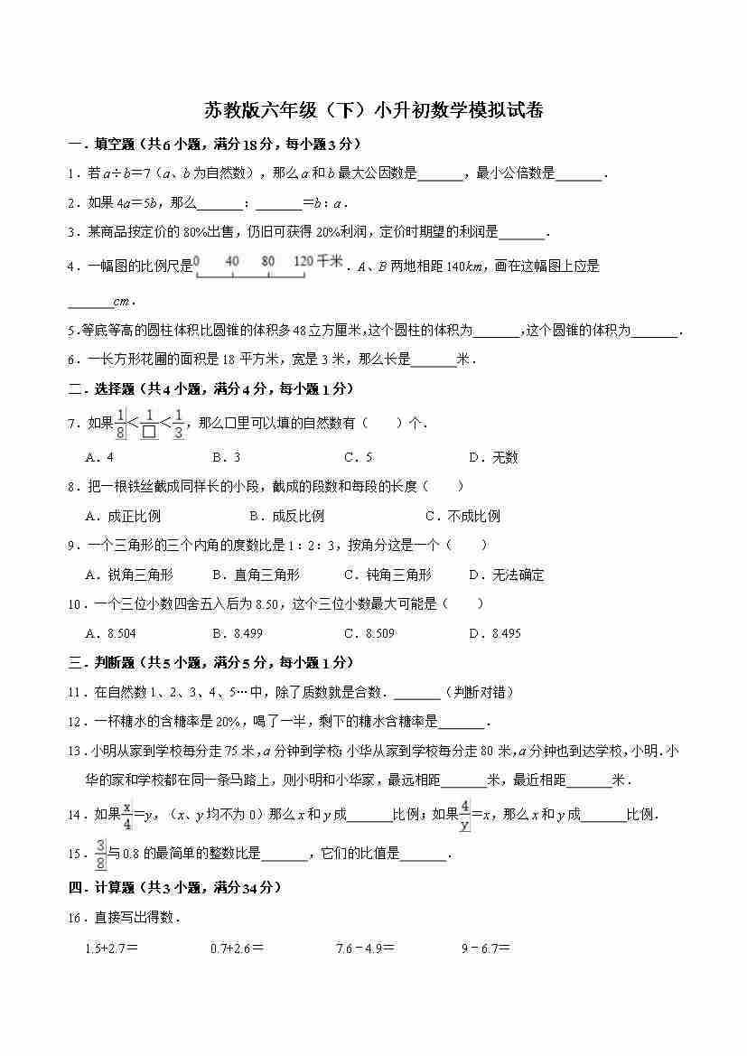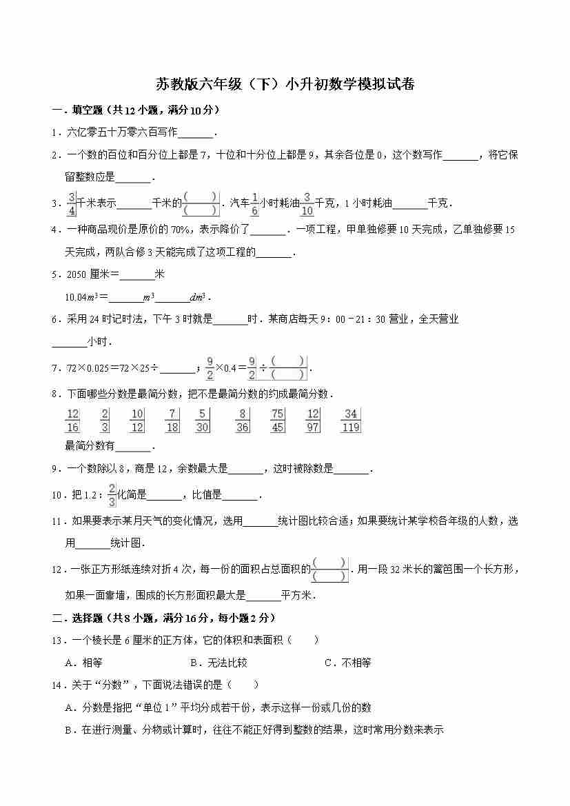 【期末真题优选卷】六年级下册数学 小升初数学模拟试题(苏教版 含解析) (1)