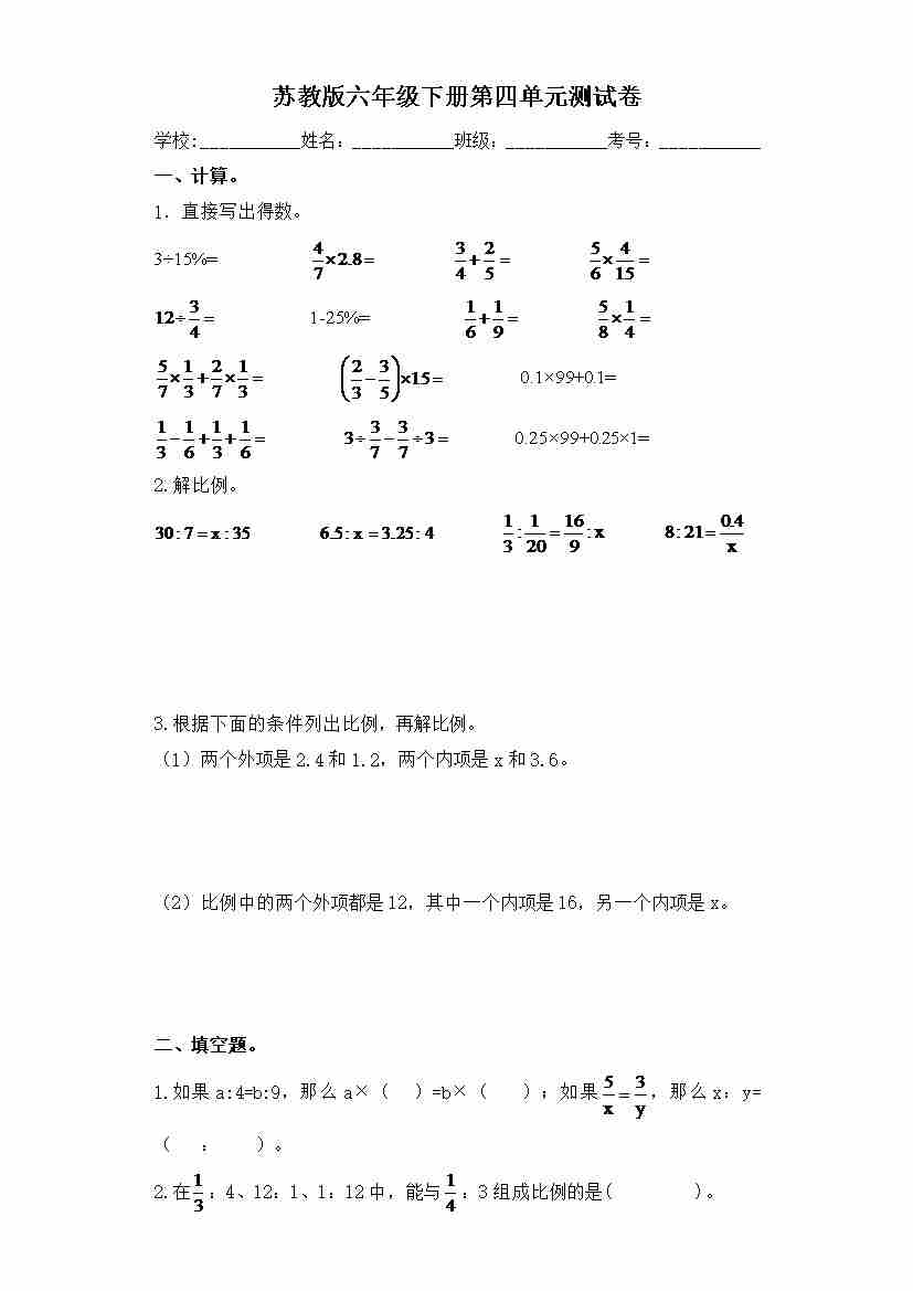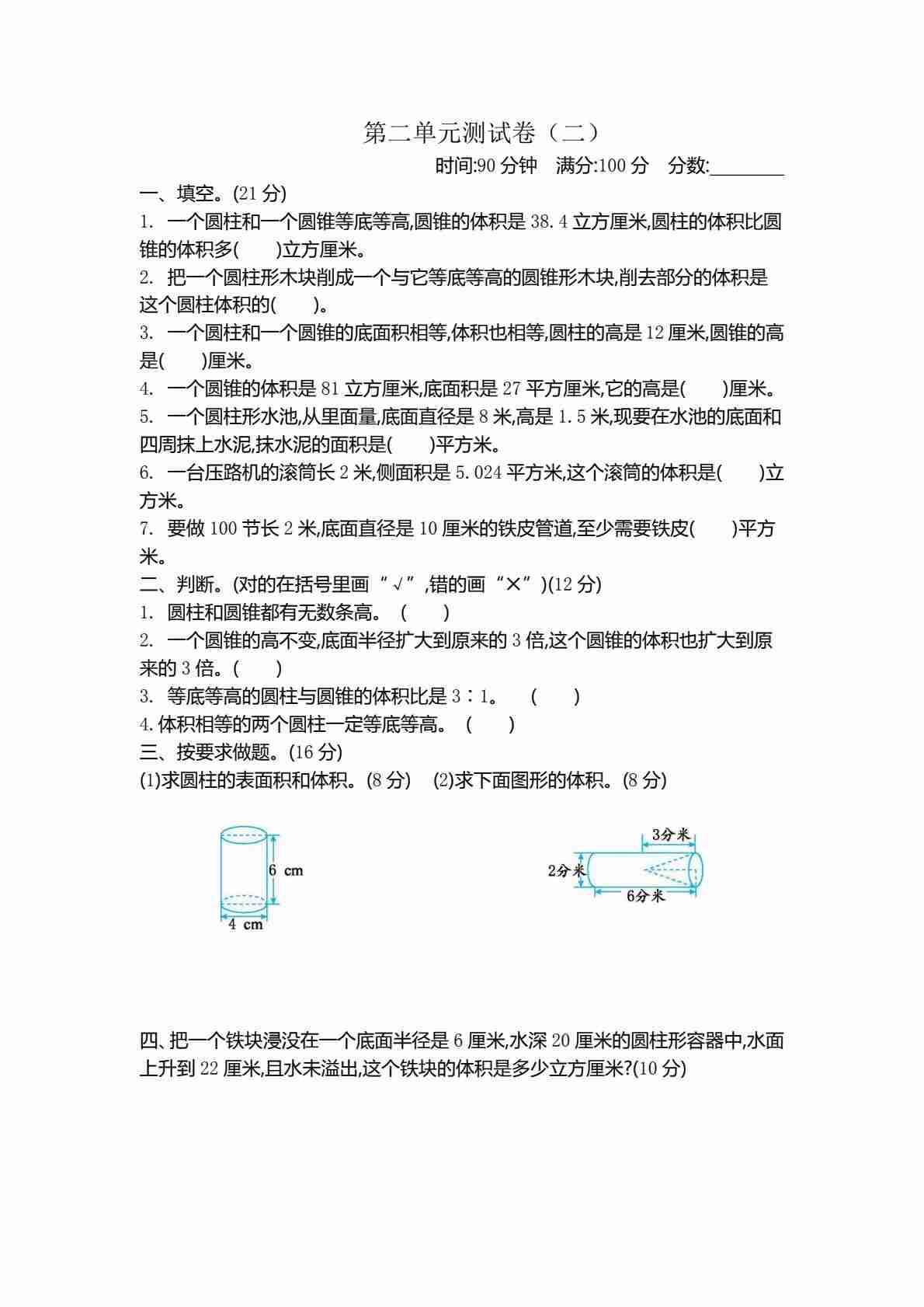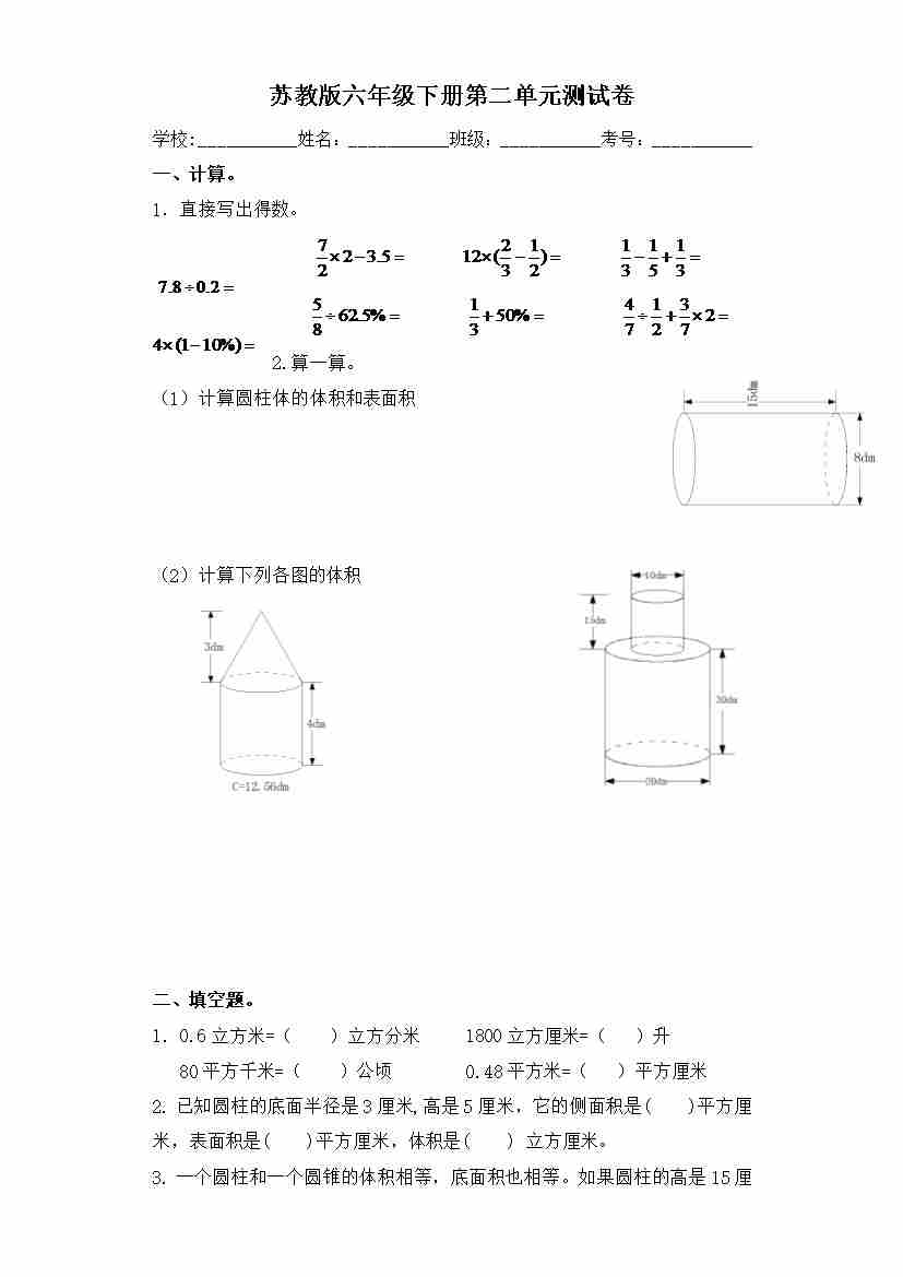 六下苏教版数学【第二单元测试卷.1】 (1)