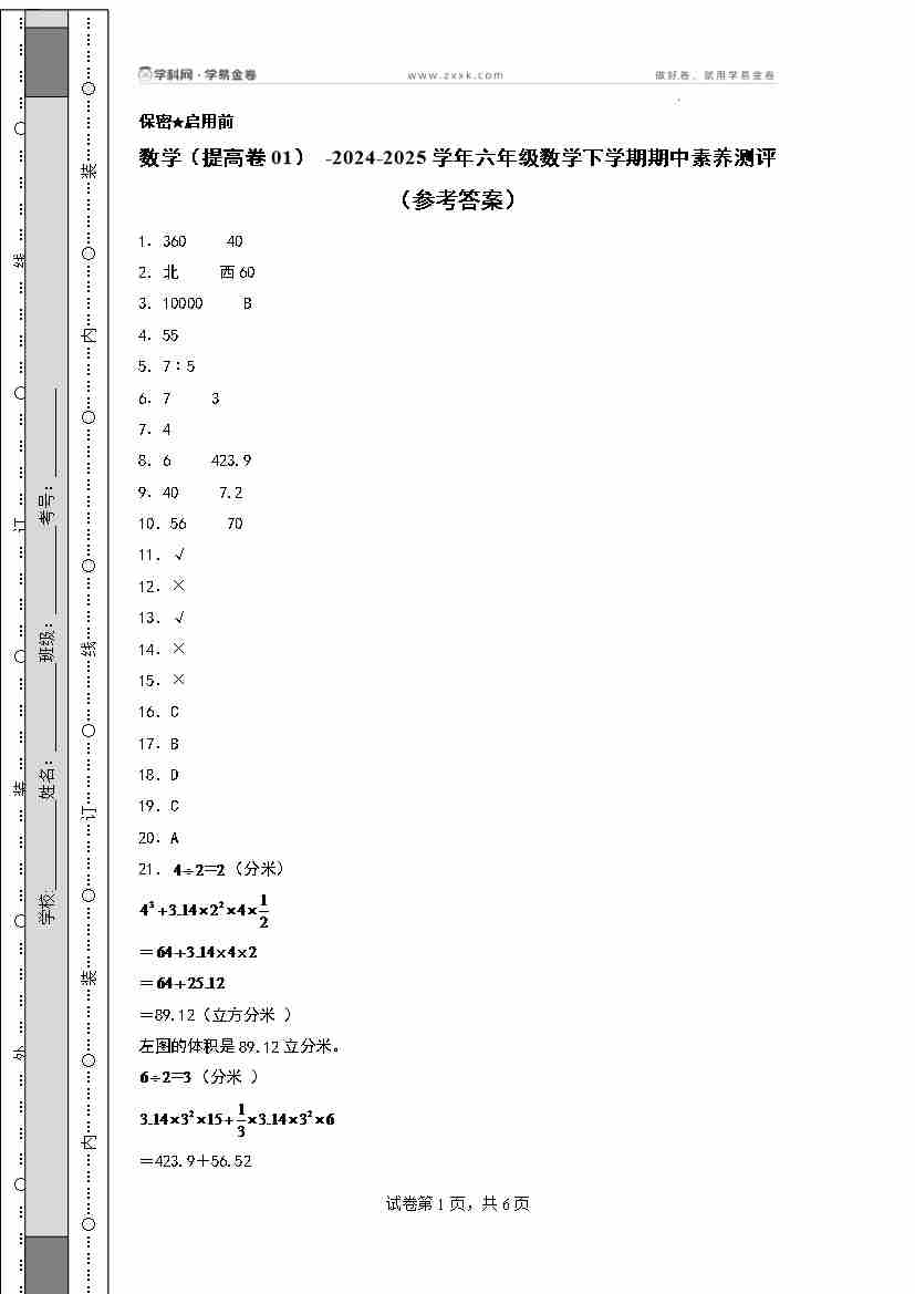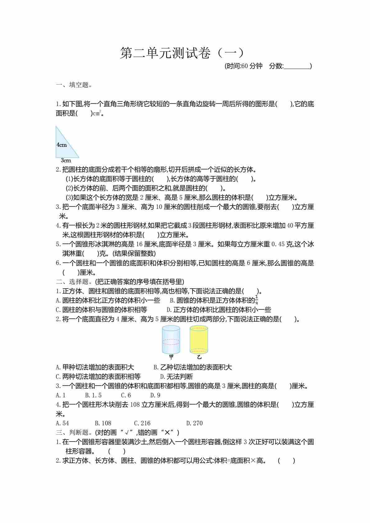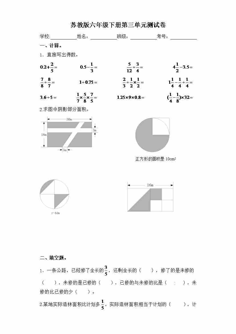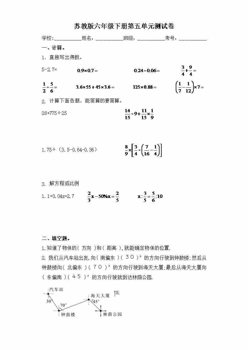 六下苏教版数学【第二单元测试卷.1】 (1)