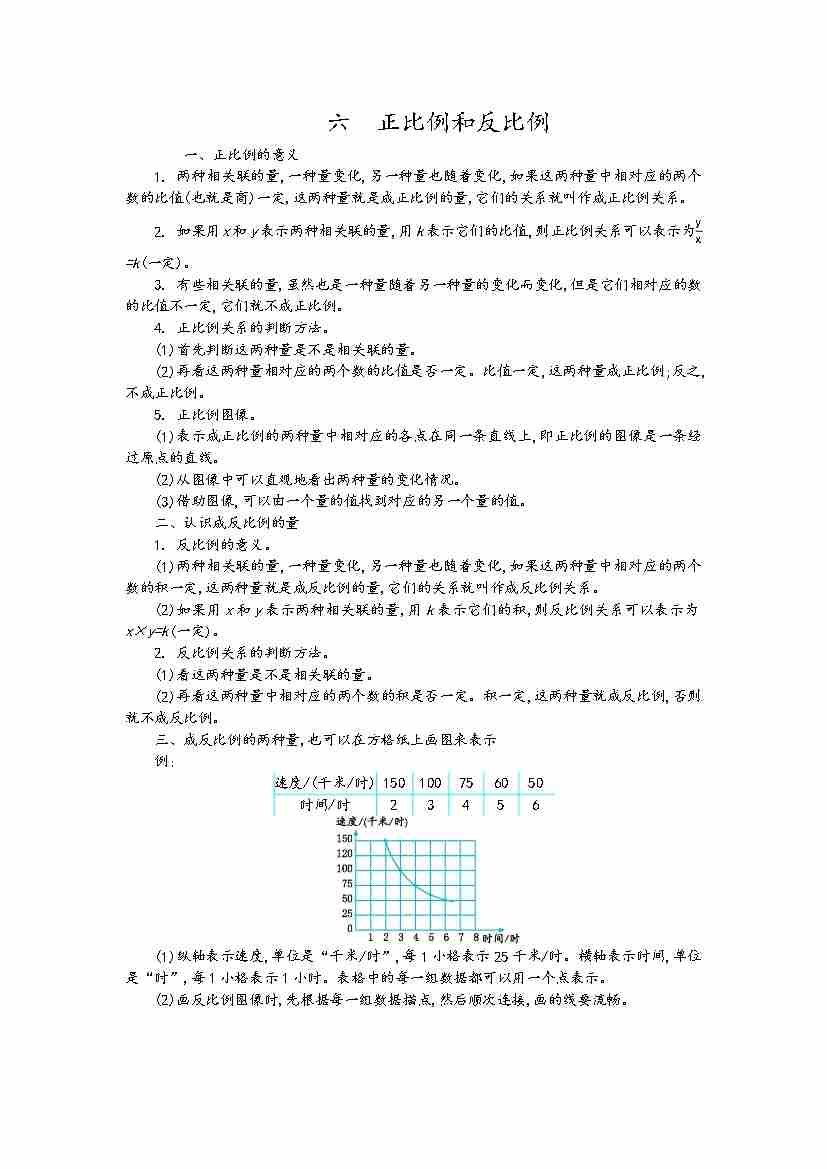 六下苏教版数学【第6单元 知识点汇总(正比例和反比例)】
