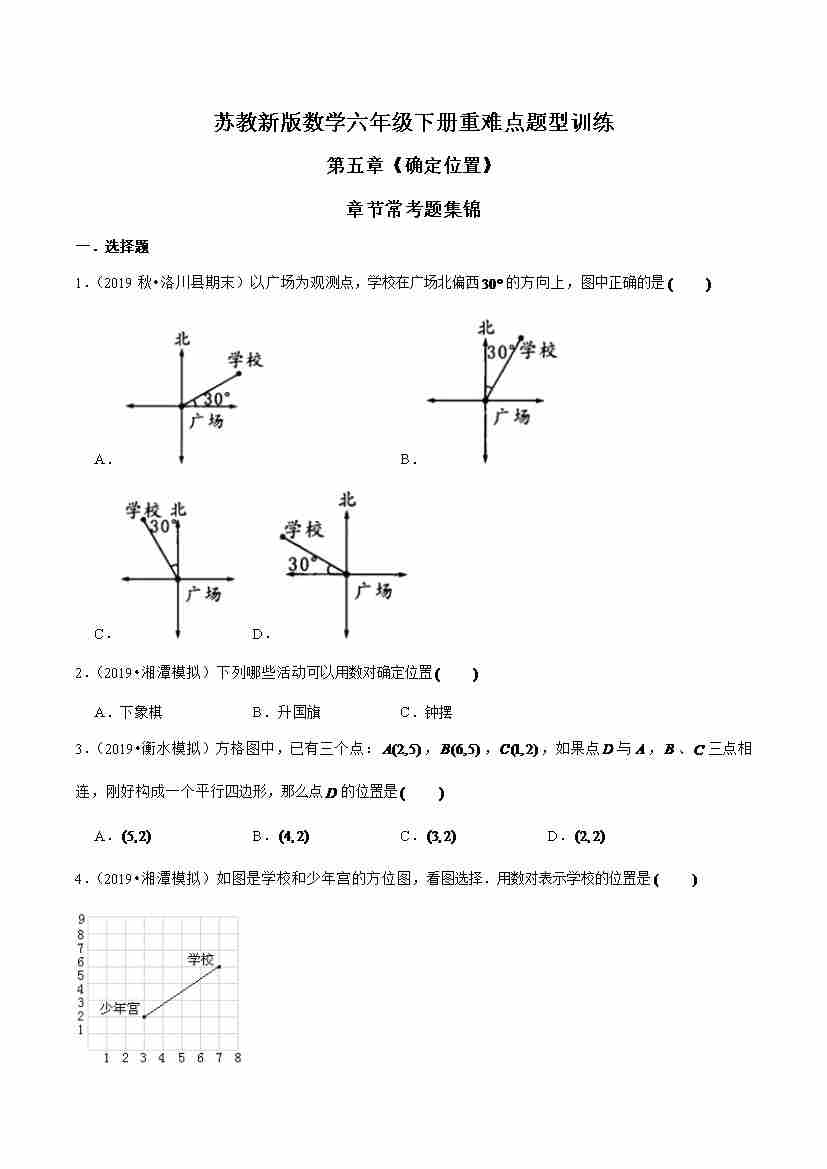 苏教新版数学六年级下册重难点题型训练第五章《确定位置》章节常考题集锦(原卷版)