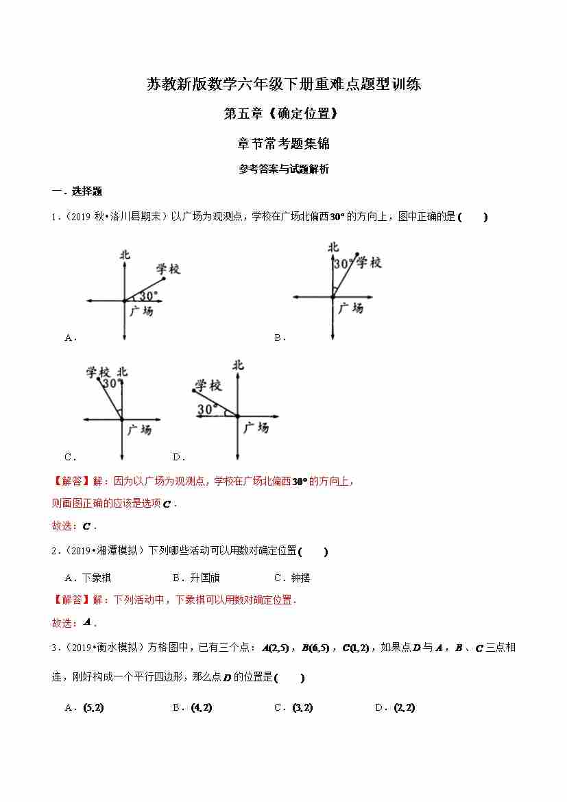 苏教新版数学六年级下册重难点题型训练第五章《确定位置》章节常考题集锦(解析版)