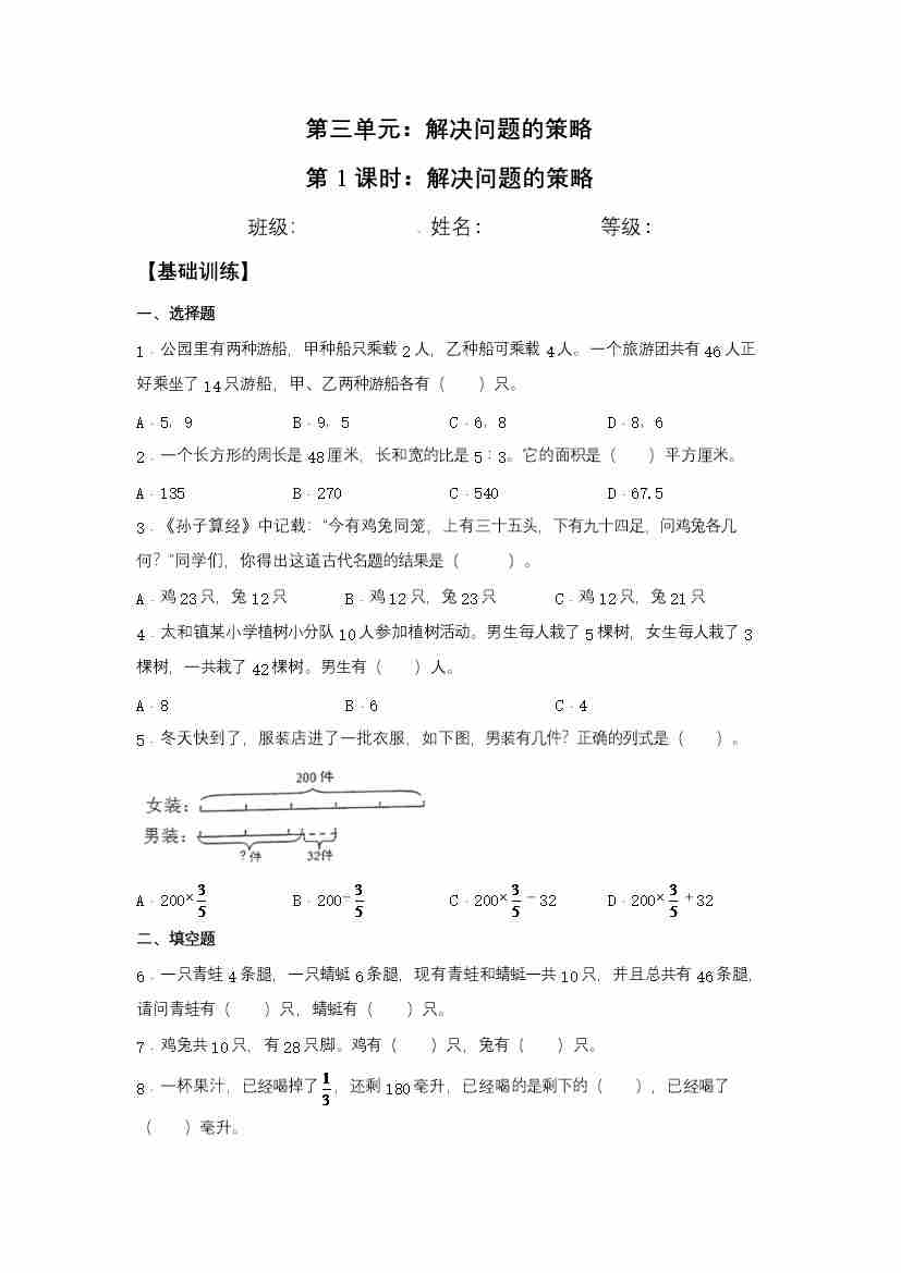 【分层训练】3.1 解决问题的策略 六年级下册数学同步练习 苏教版(含答案)