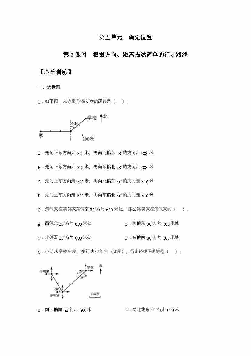 【分层训练】5.2 根据方向、距离描述简单的行走路线 六年级下册数学同步练习 苏教版(含答案)