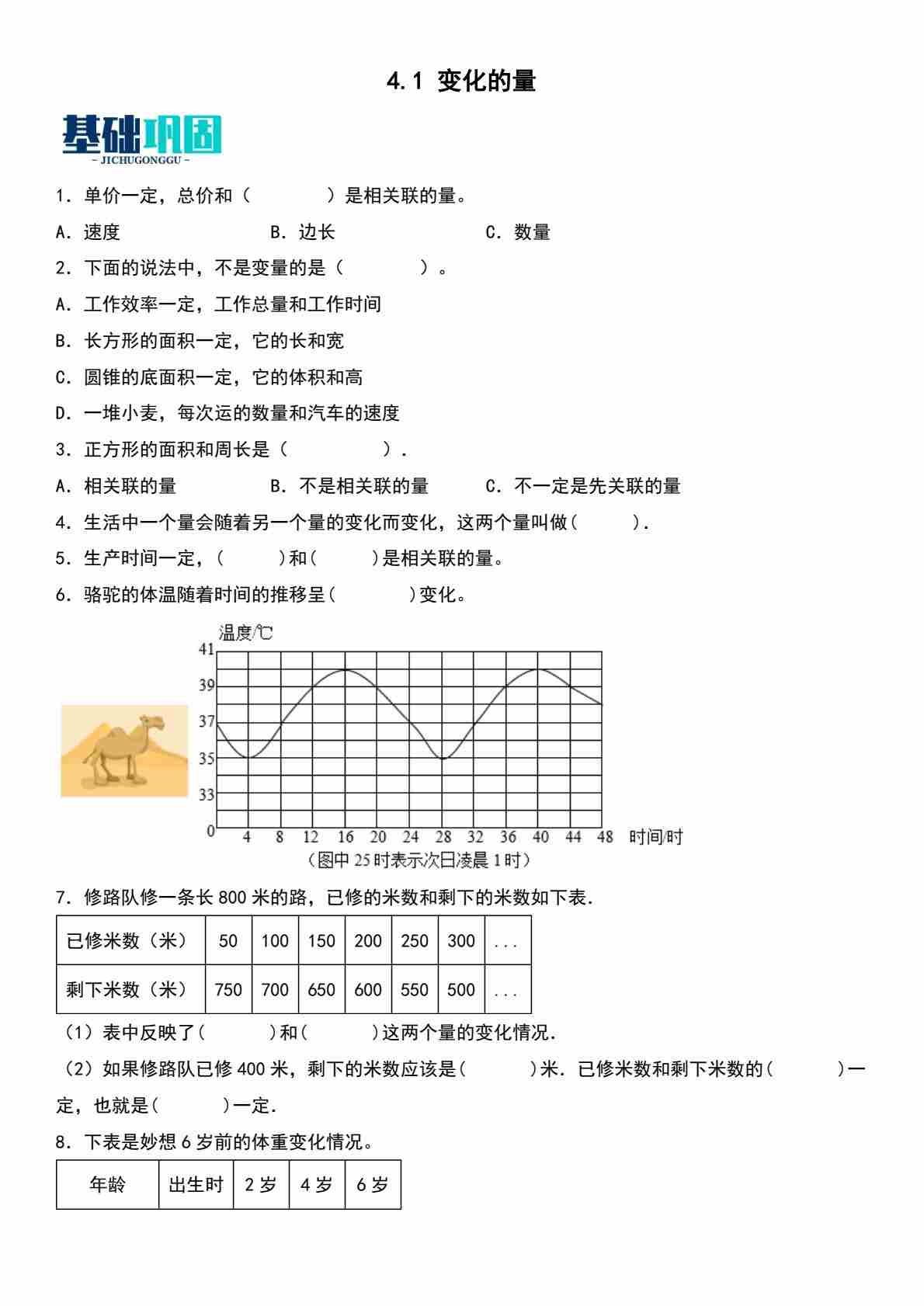 4.1 变化的量 (分层作业)