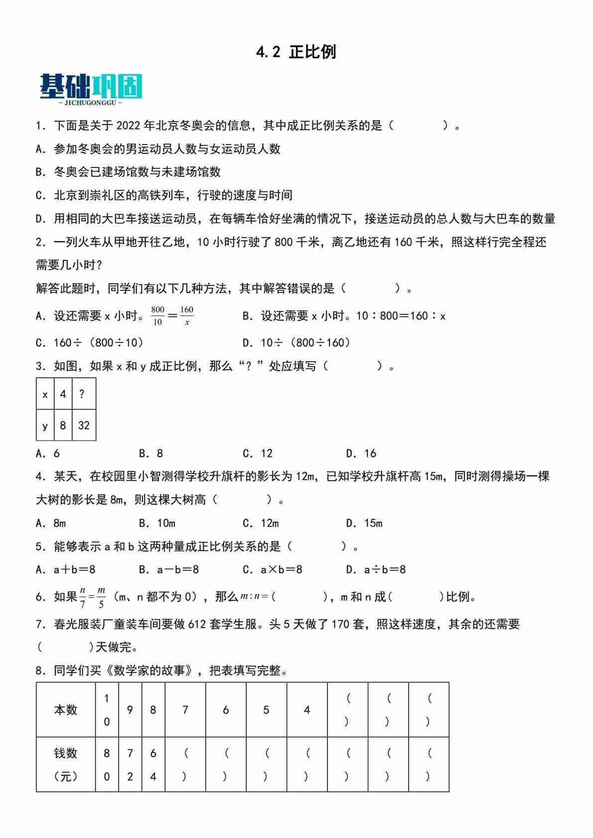 4.2 正比例 (分层作业)