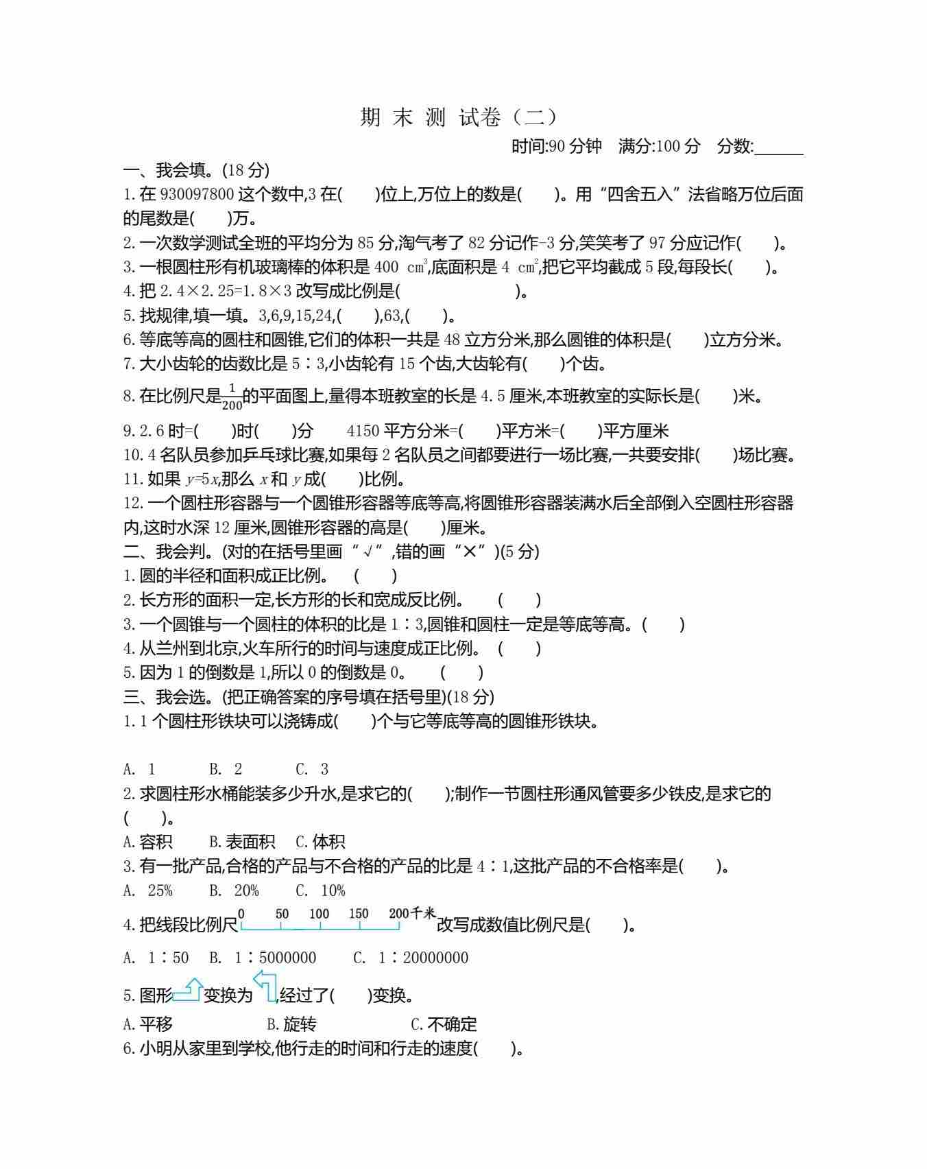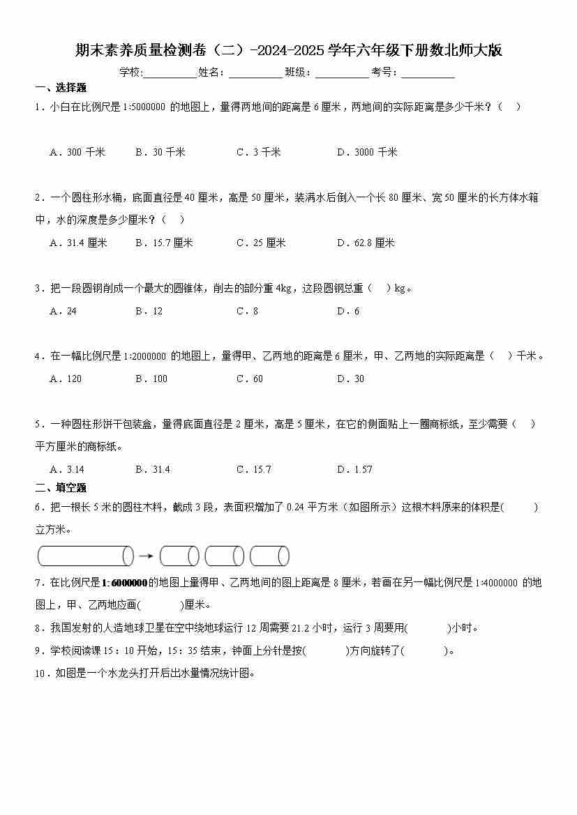 六(下)北师大数学小升初期末测试卷.2