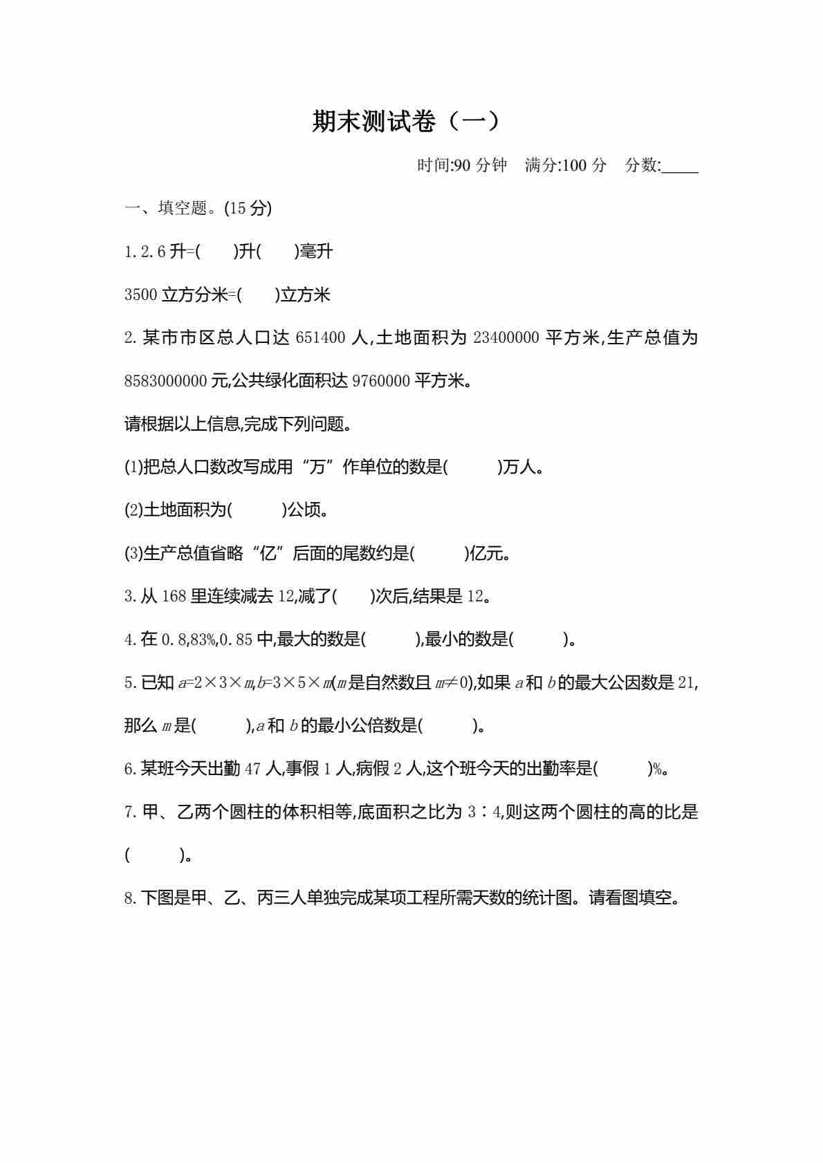 六(下)北师大数学小升初期末测试卷.1