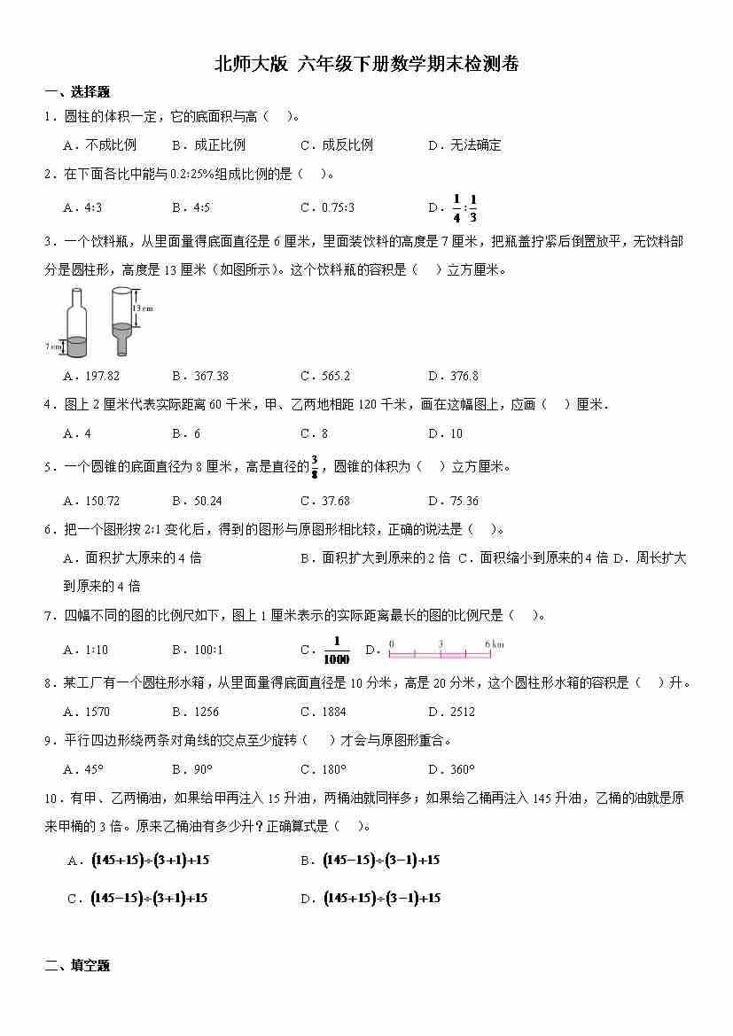 六(下)数学北师版【期末真题检测卷】