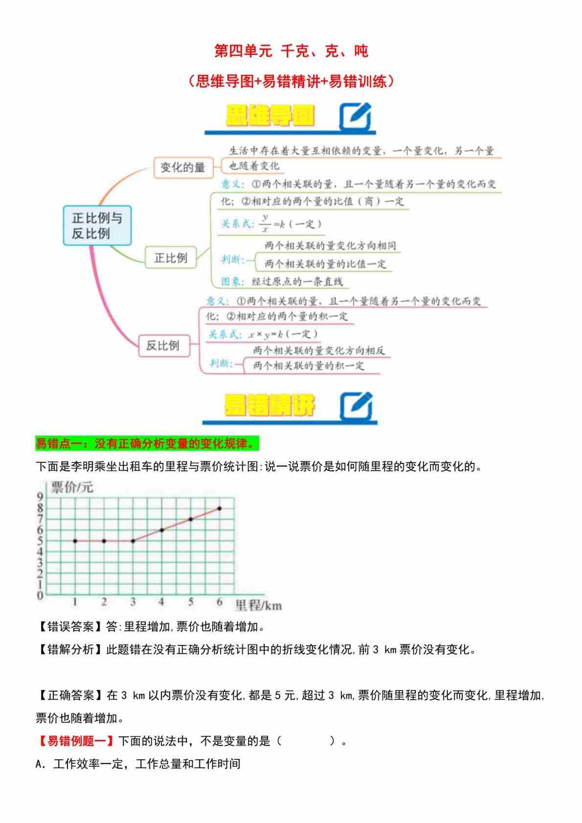 第4单元、正比例与反比例(易错题)