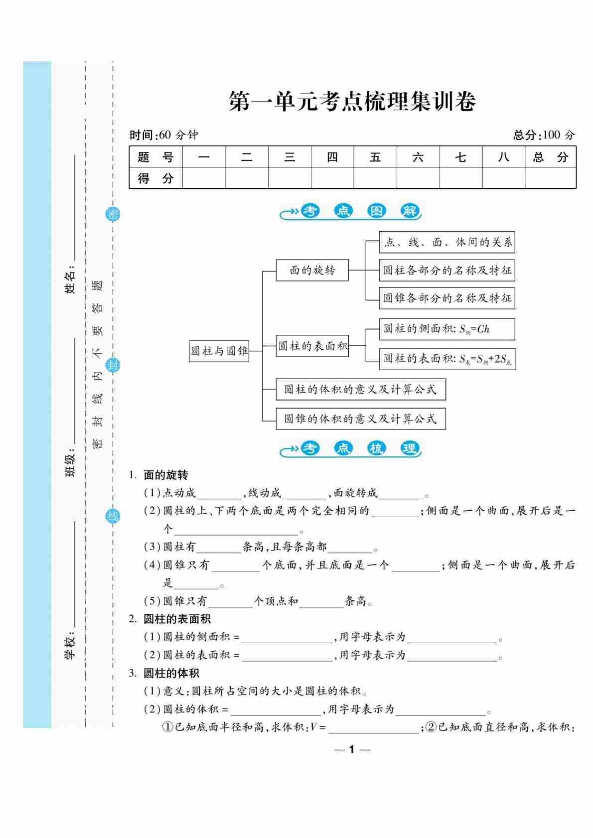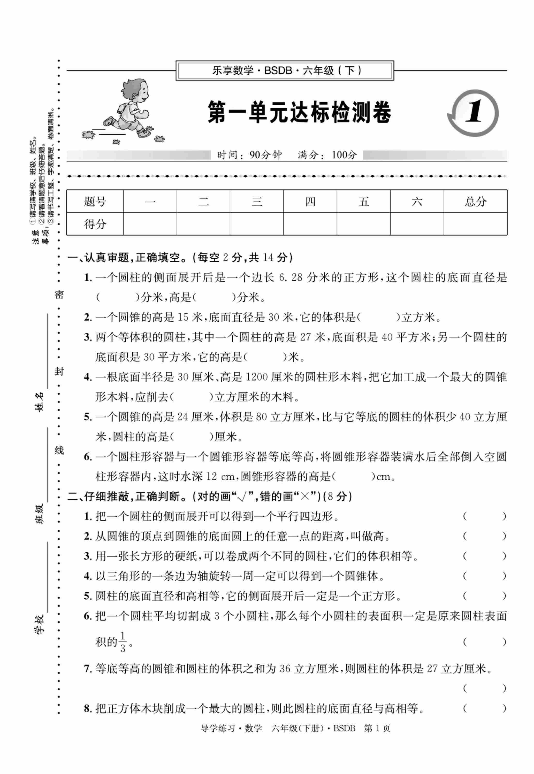 六(下)数学课时《导学练习卷》北师大A4版-试卷