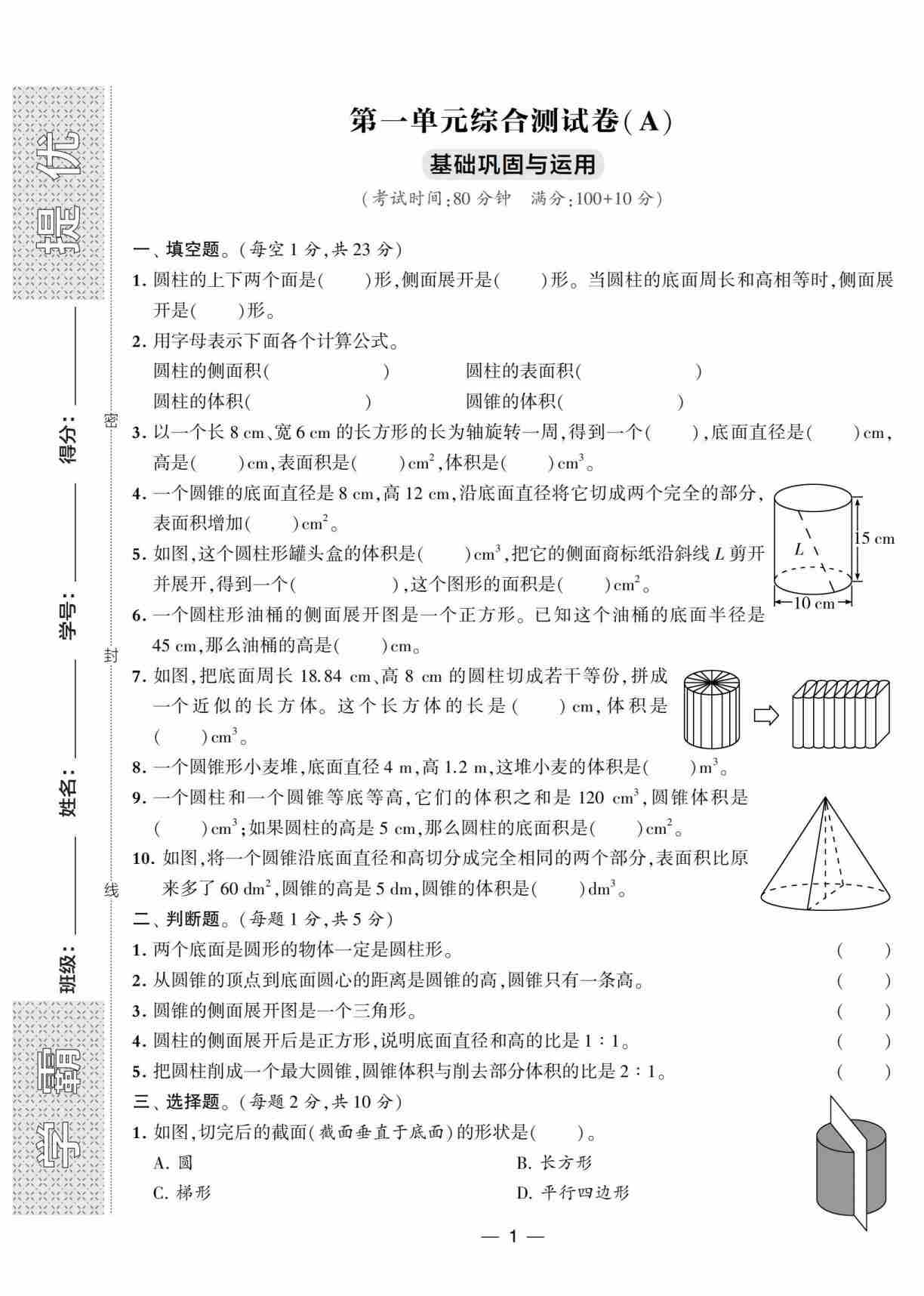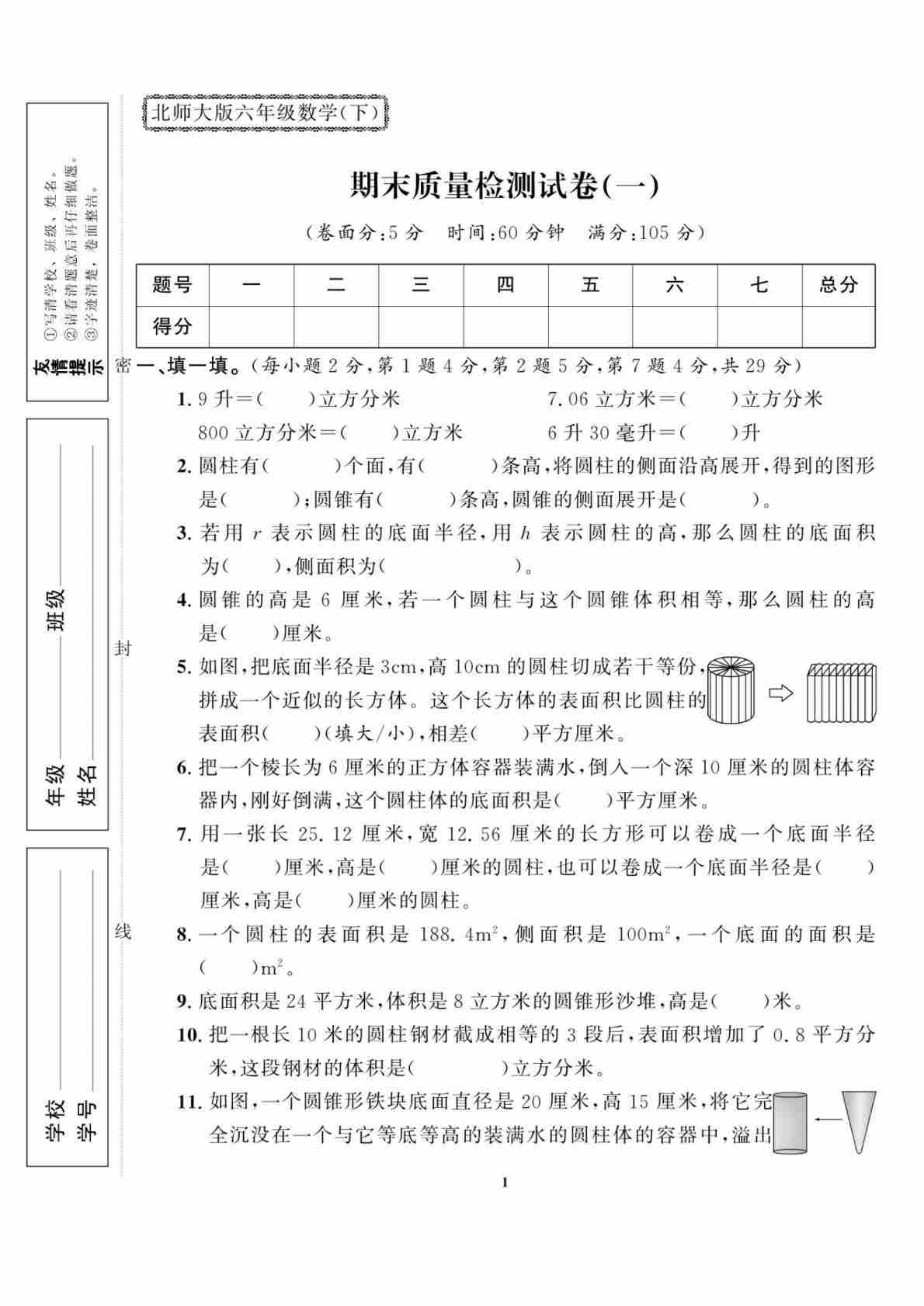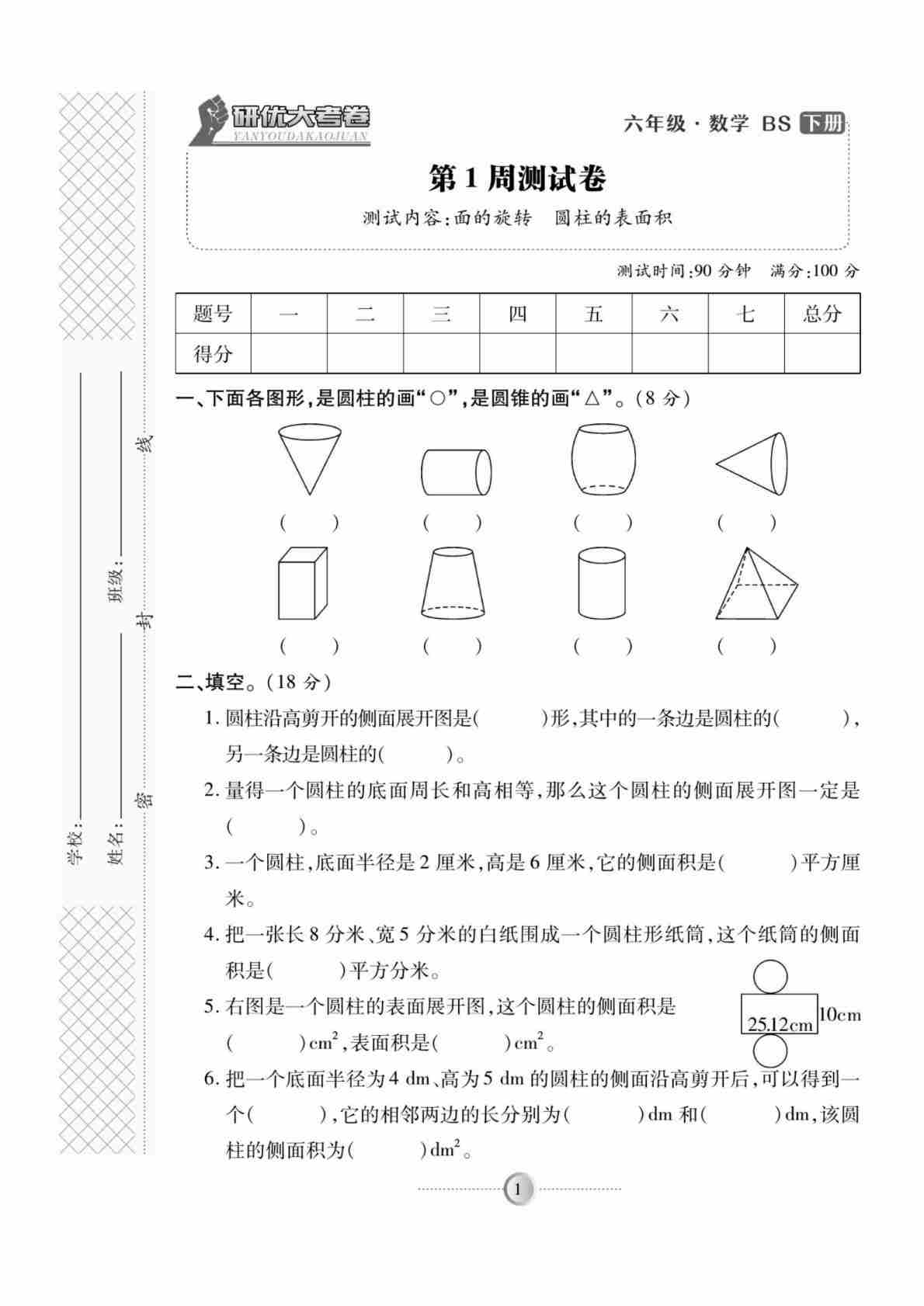 六(下)数学试卷《研优大考卷》北师大A4版