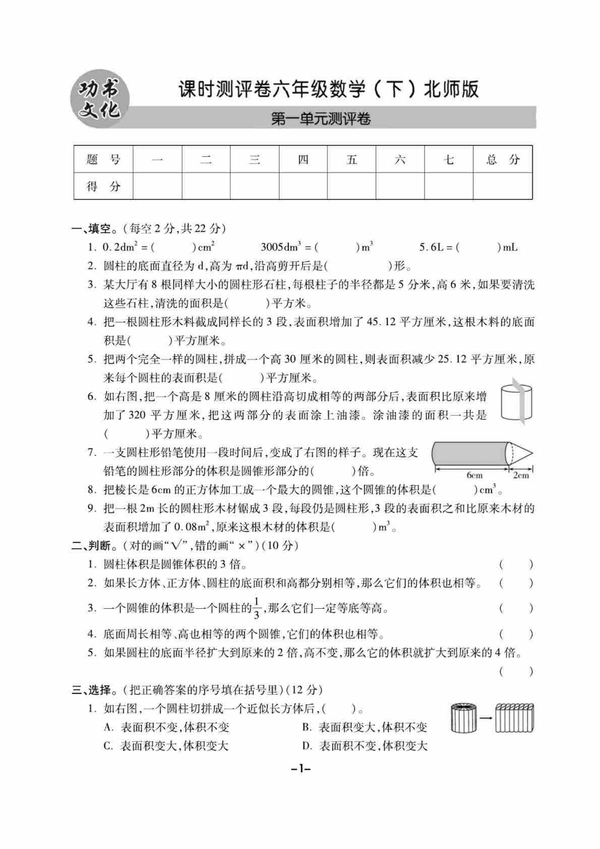 六(下)数学试卷《课时测评卷》北师大A4版