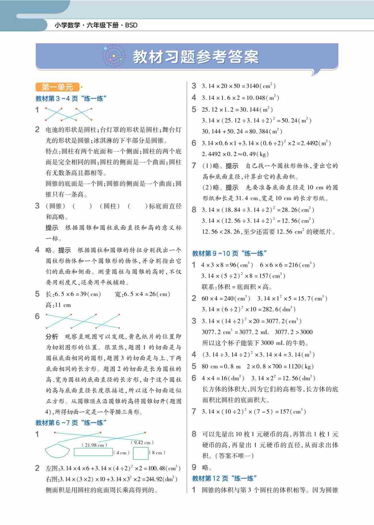 六(下)数学预习《教材习题答案》北师版