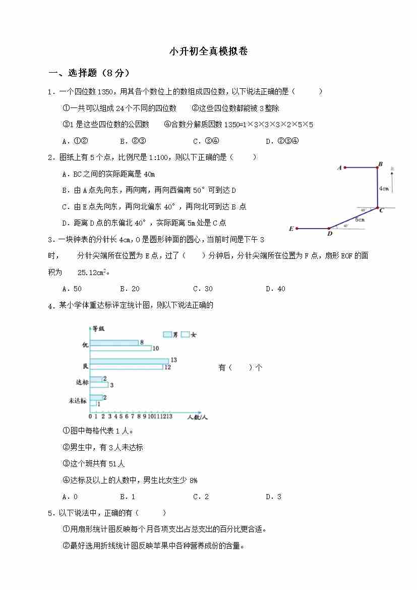 【备战小升初】六年级下册数学试题--小升初全真模拟卷(四)人教版 含答案