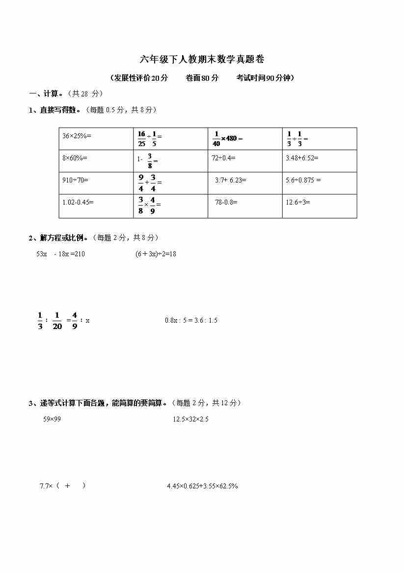 【备战期末提高卷】人教版数学六年级下册期末综合测试(三)(含答案)