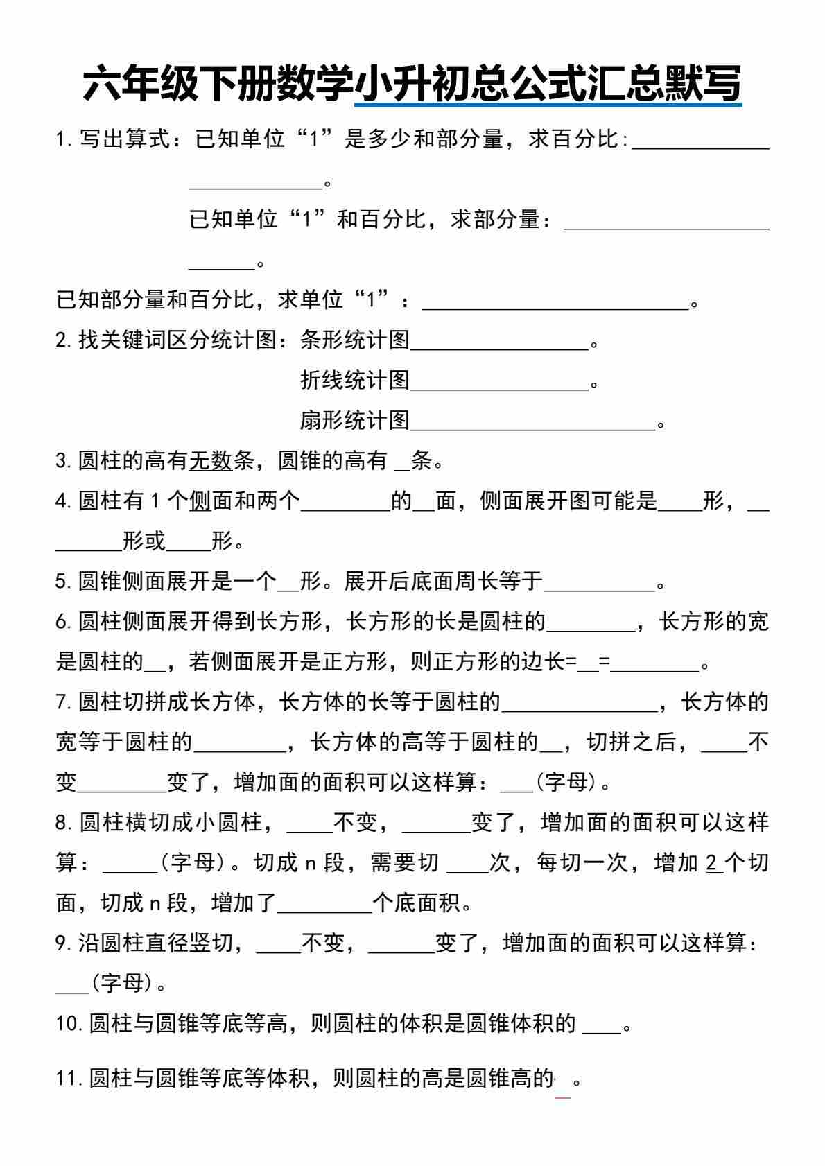六(下)数学小升初重难点--数与代数专项训练(1)