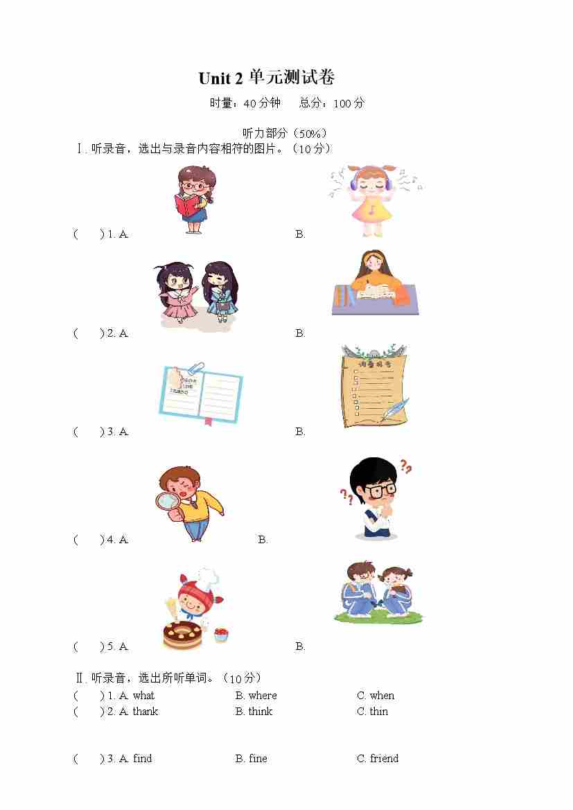 五下unit2单元测试卷