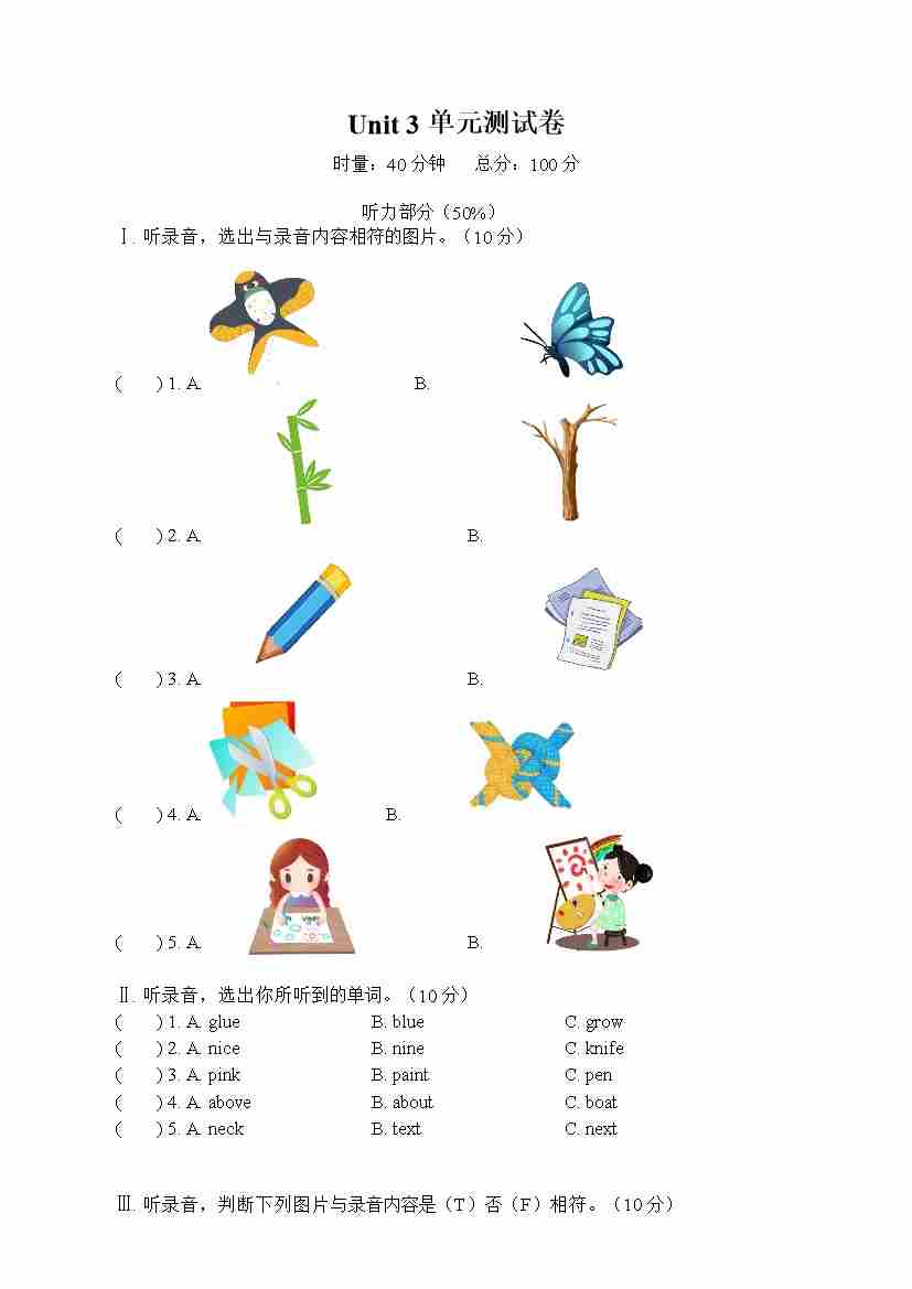 五下unit3单元测试卷