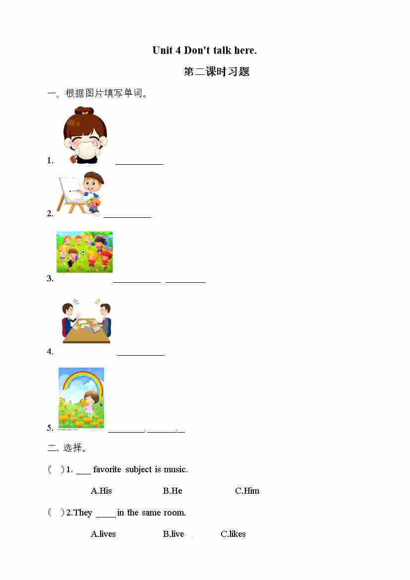 五年级下册英语一课一练- Unit 4 Don't talk here 第二课时 湘少版(三起)(word 版,含答案)