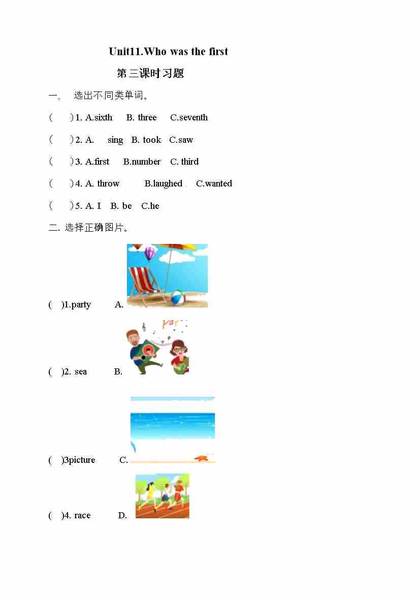 五年级下册英语一课一练-Unit 11 Who was first 第一课时 湘少版三起(word版,含答案)