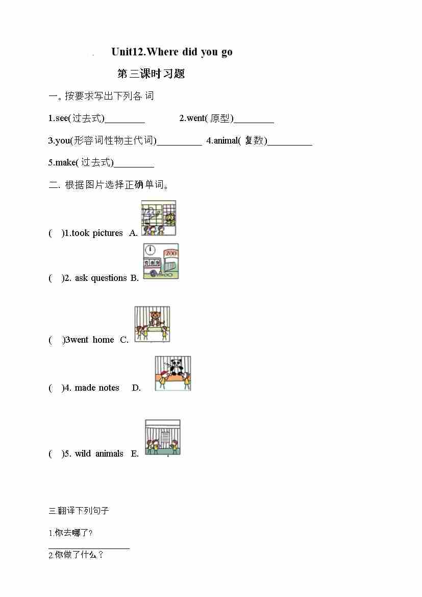 五年级下册英语一课一练-Unit 12 Where did you go 第三课时 湘少版三起(word版,含答案)