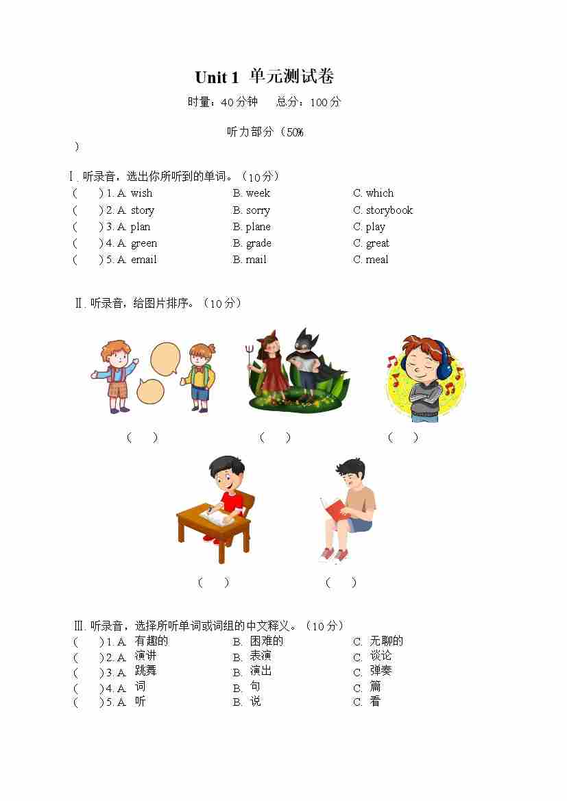 湘少五下Unit1单元测试卷