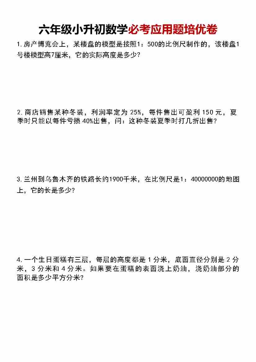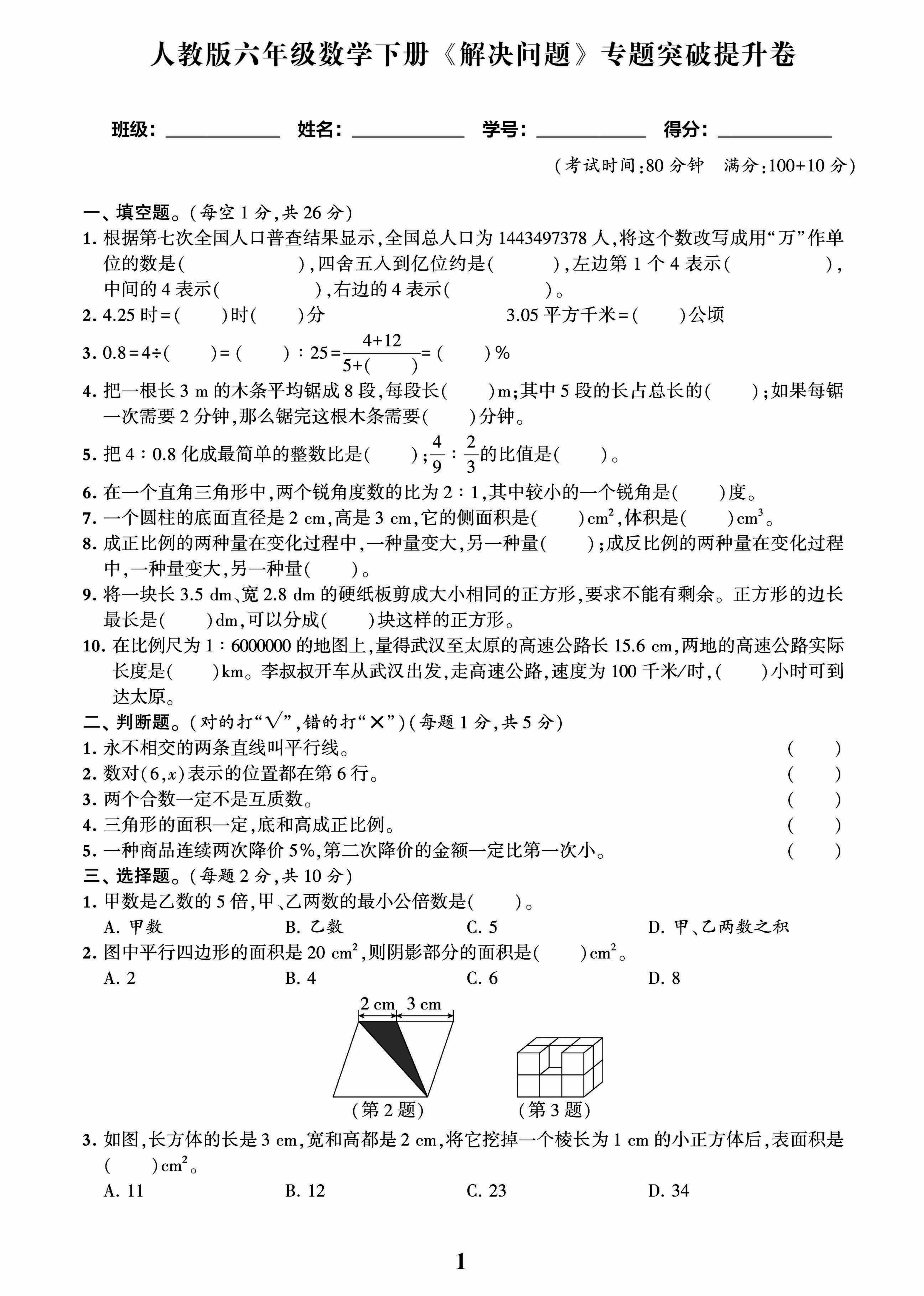 六(下)数学人教解决问题期末专题突破卷,附答案
