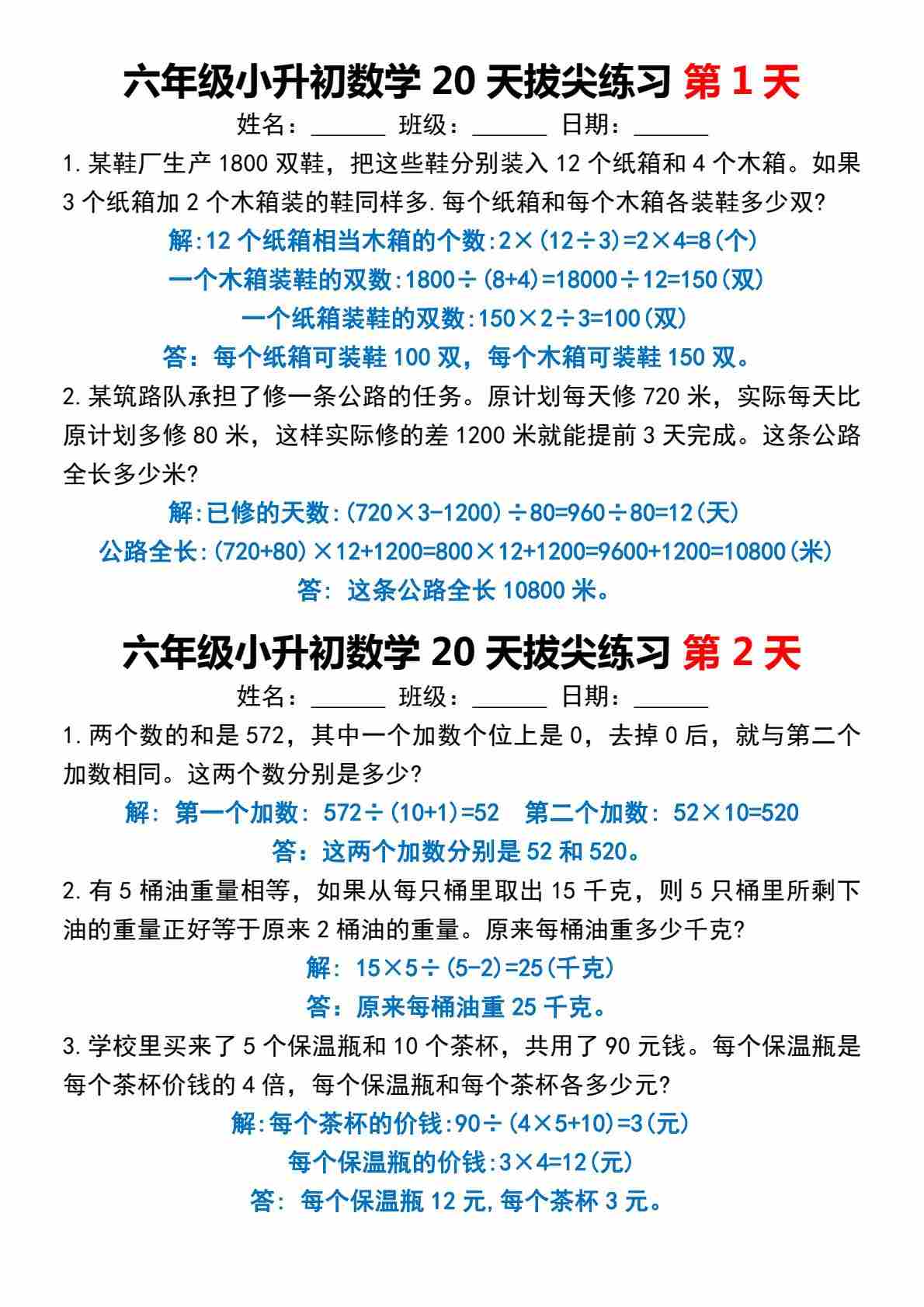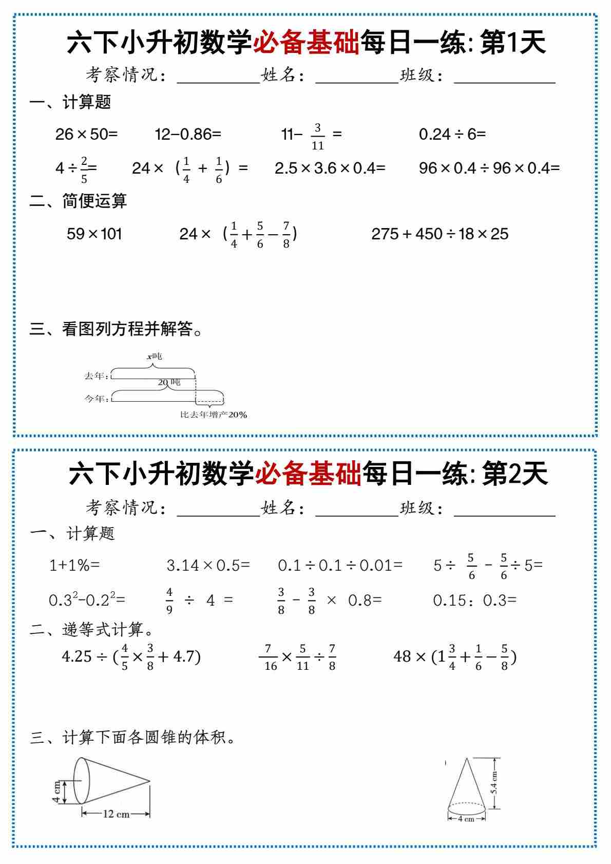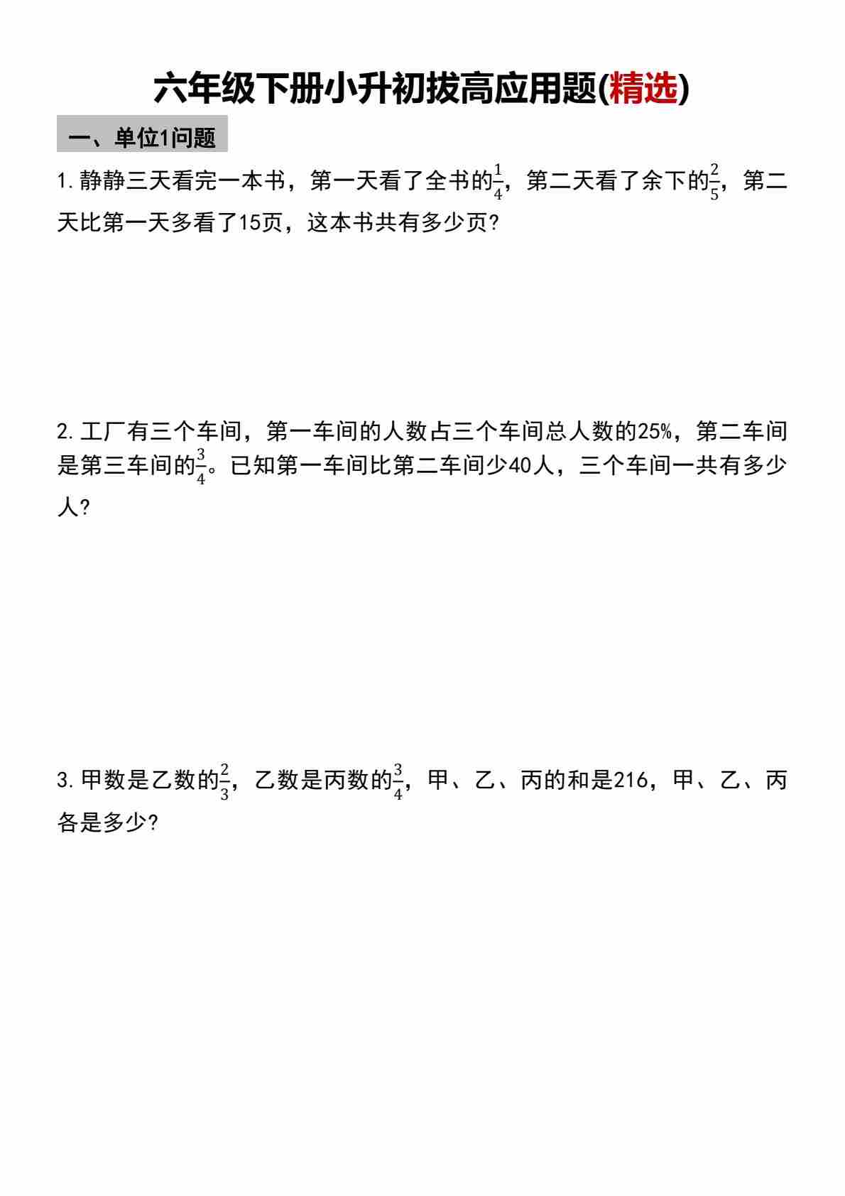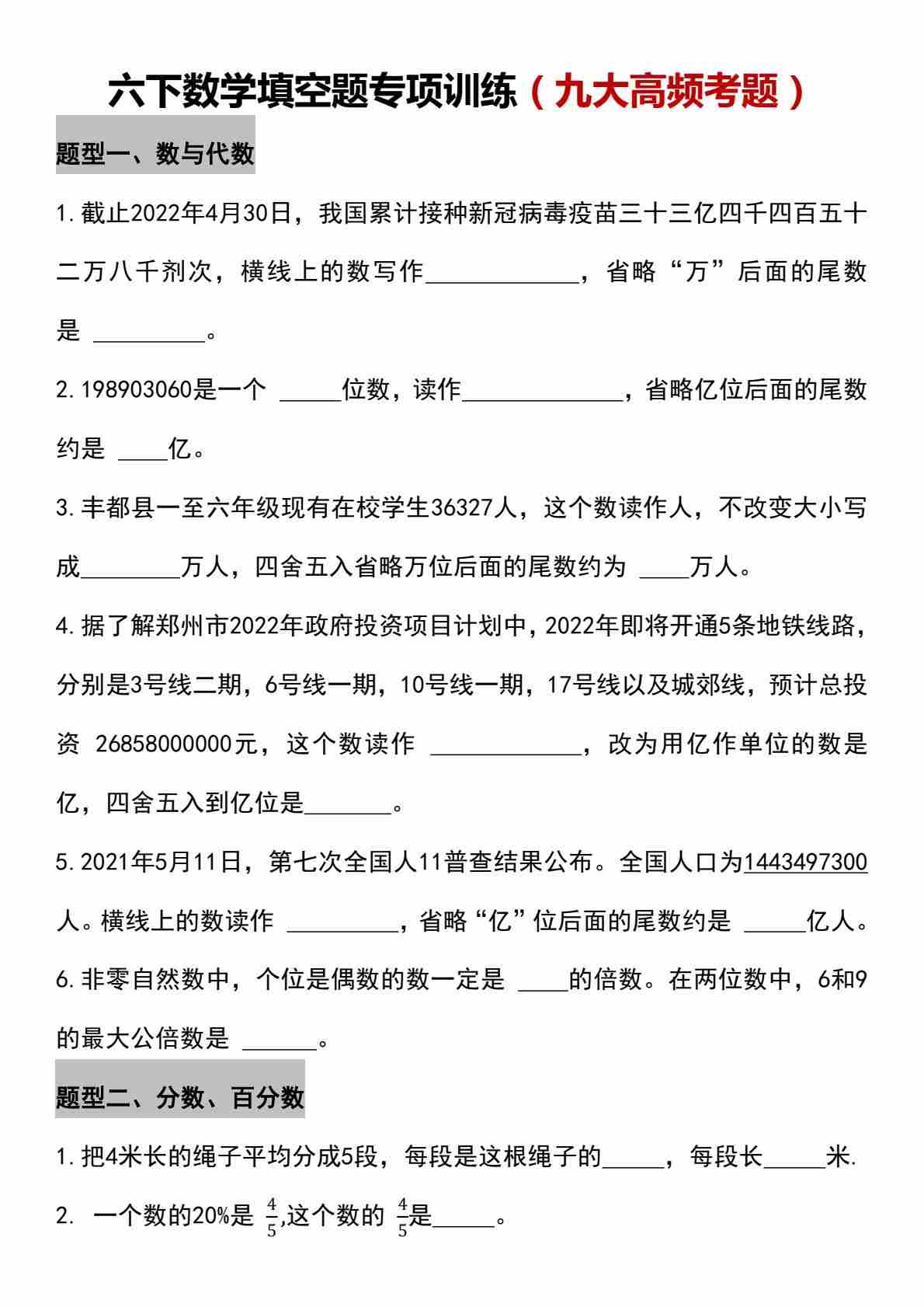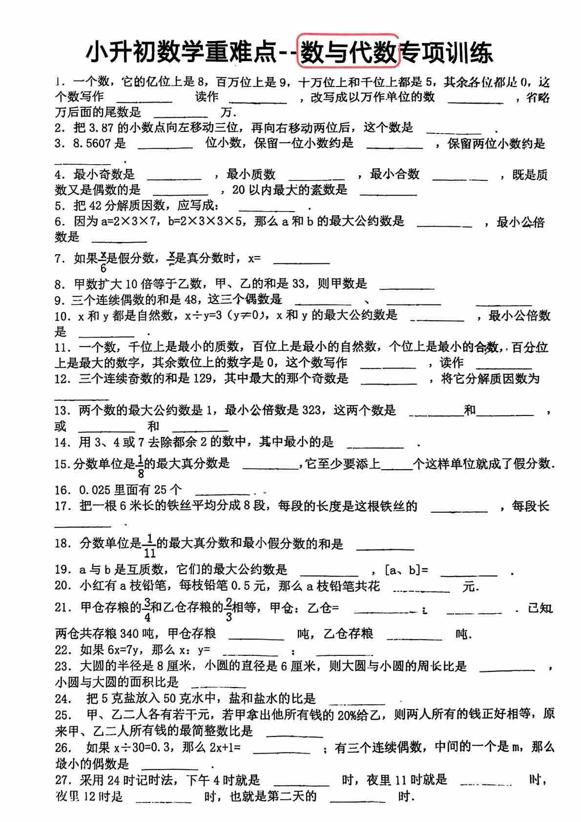 六(下)数学六年级小升初重难点--数与代数专项训练(1)