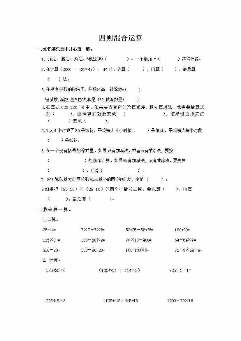 六下数学【总复习专题:四则混合运算 含答案 7页】