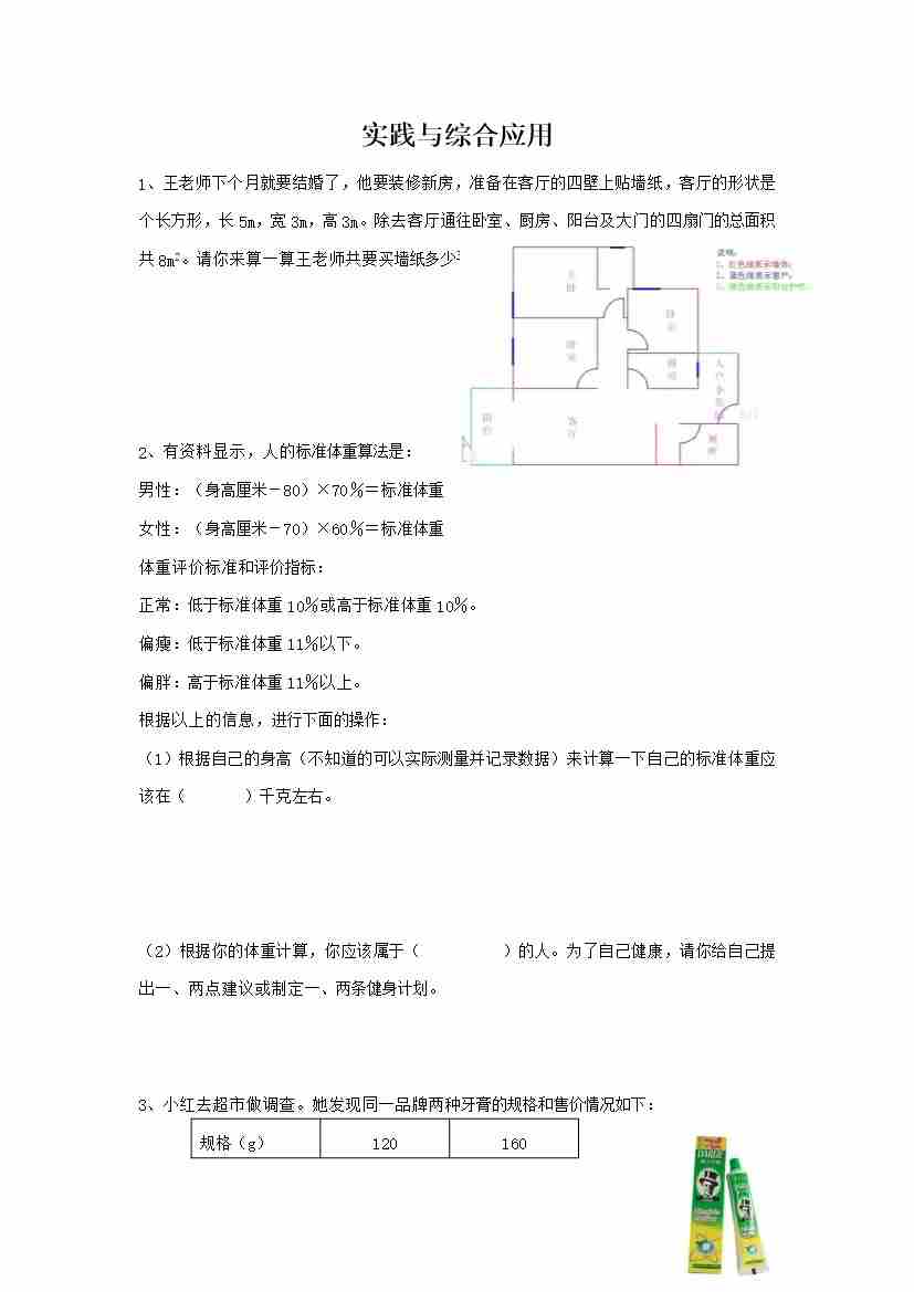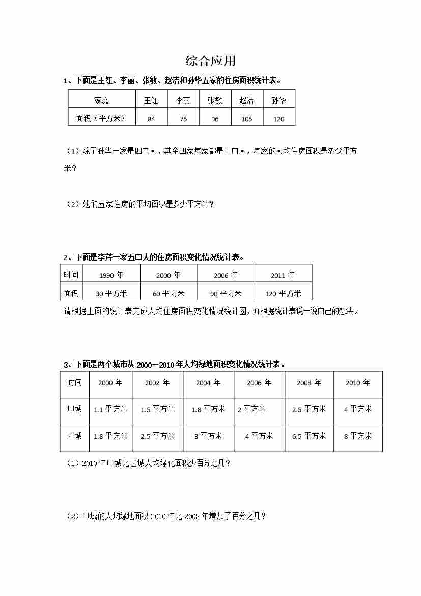 六下数学【总复习专题:综合应用 含答案 4页】