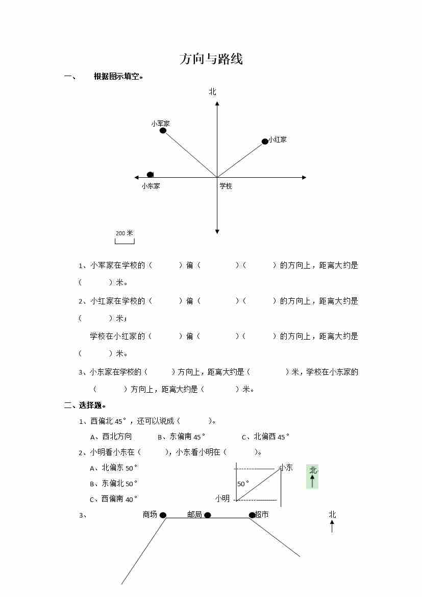 六下数学【总复习专题:方向与路线 含答案 5页】
