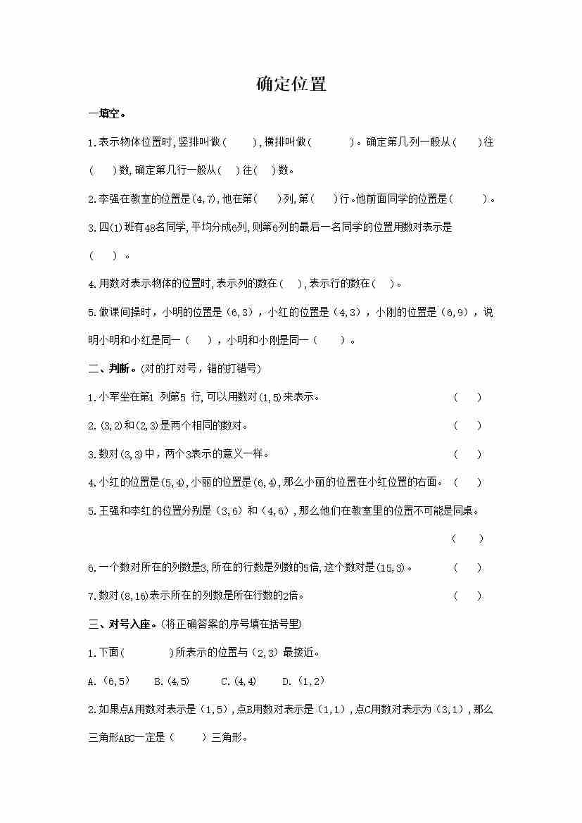 六下数学【总复习专题:确定位置2 含答案 5页】