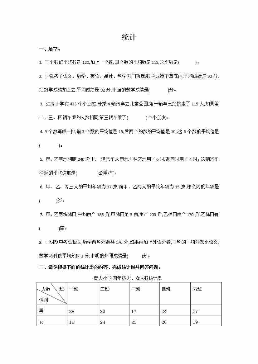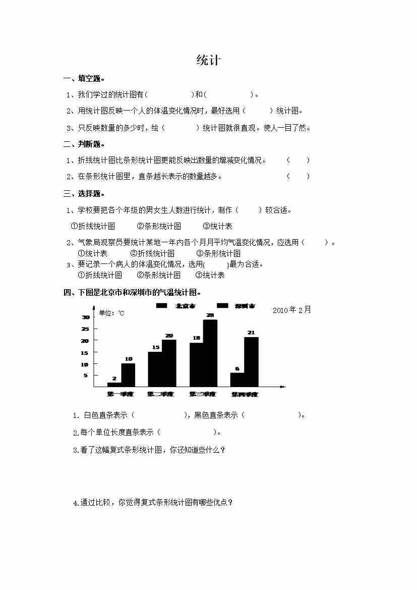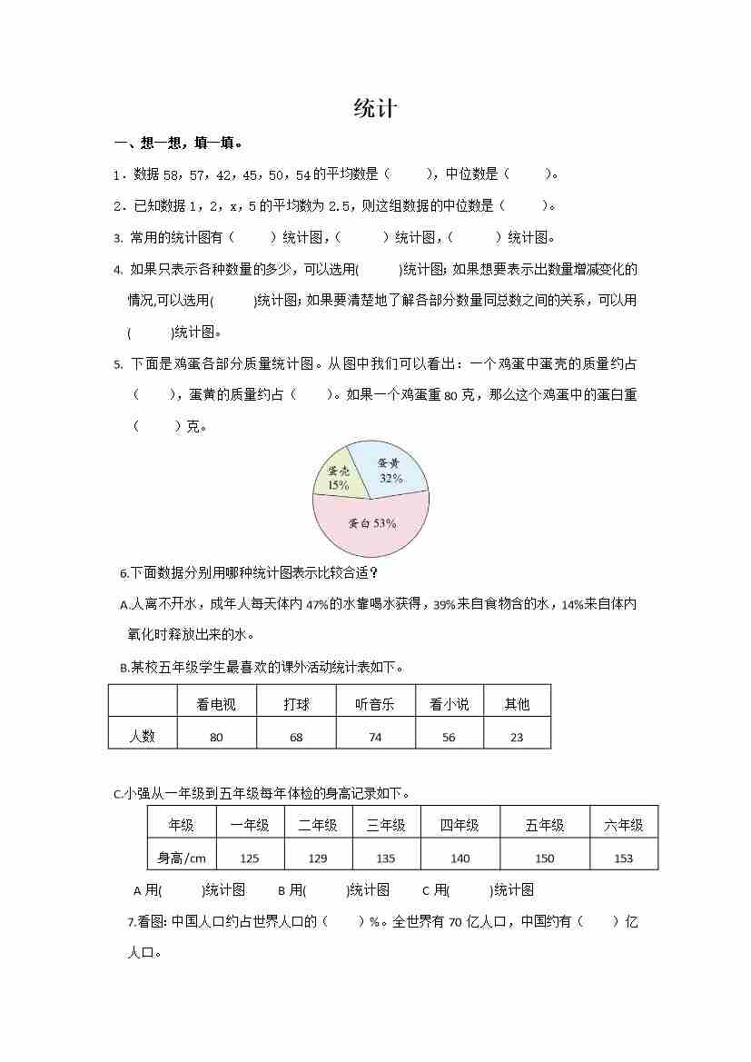 六下数学【总复习专题:统计1 含答案 5页】