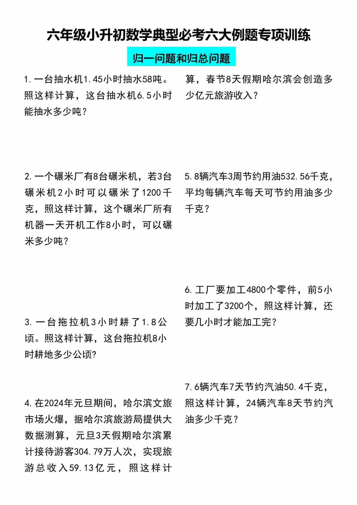 六(下)数学小升初典型必考六大例题专项训练(1)