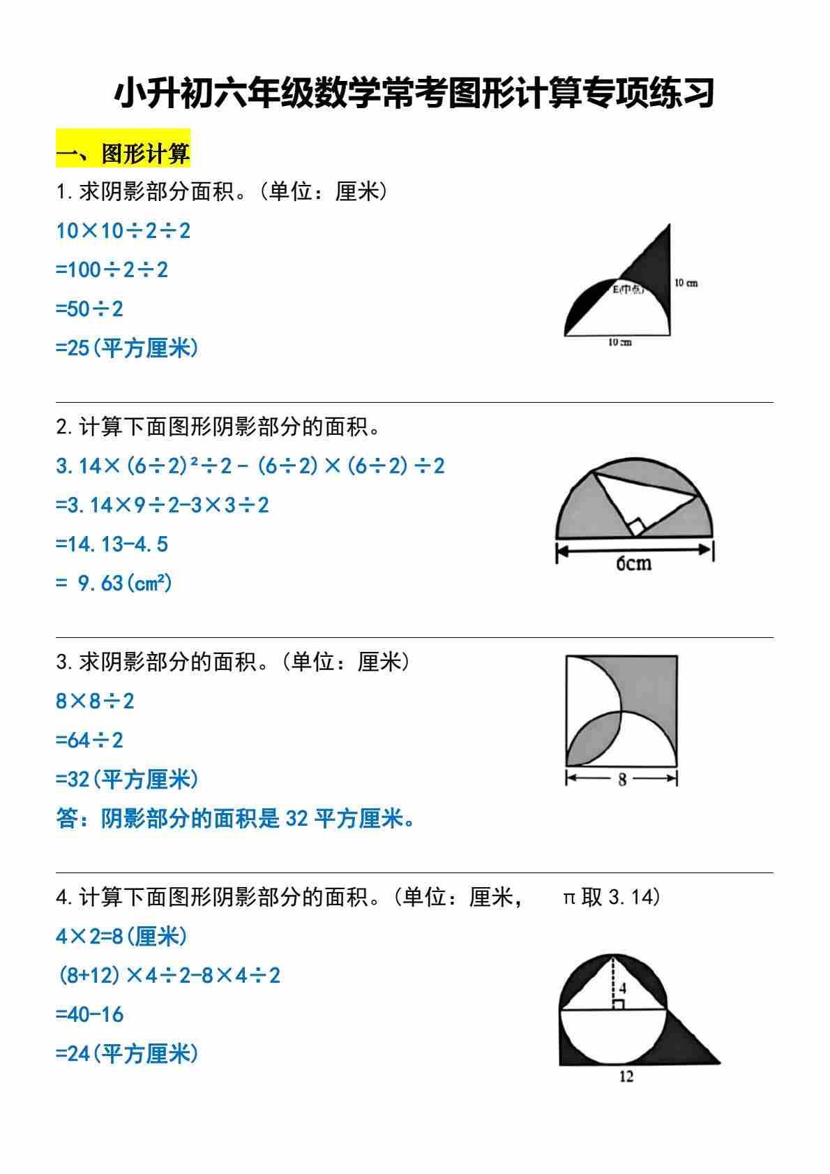 六(下)数学小升初常考图形计算专项练习