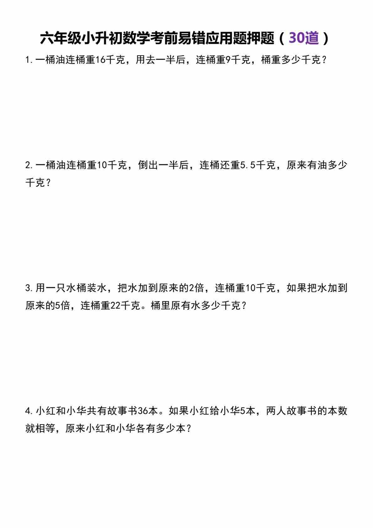 六(下)数学小升初考前易错应用题押题(30道)