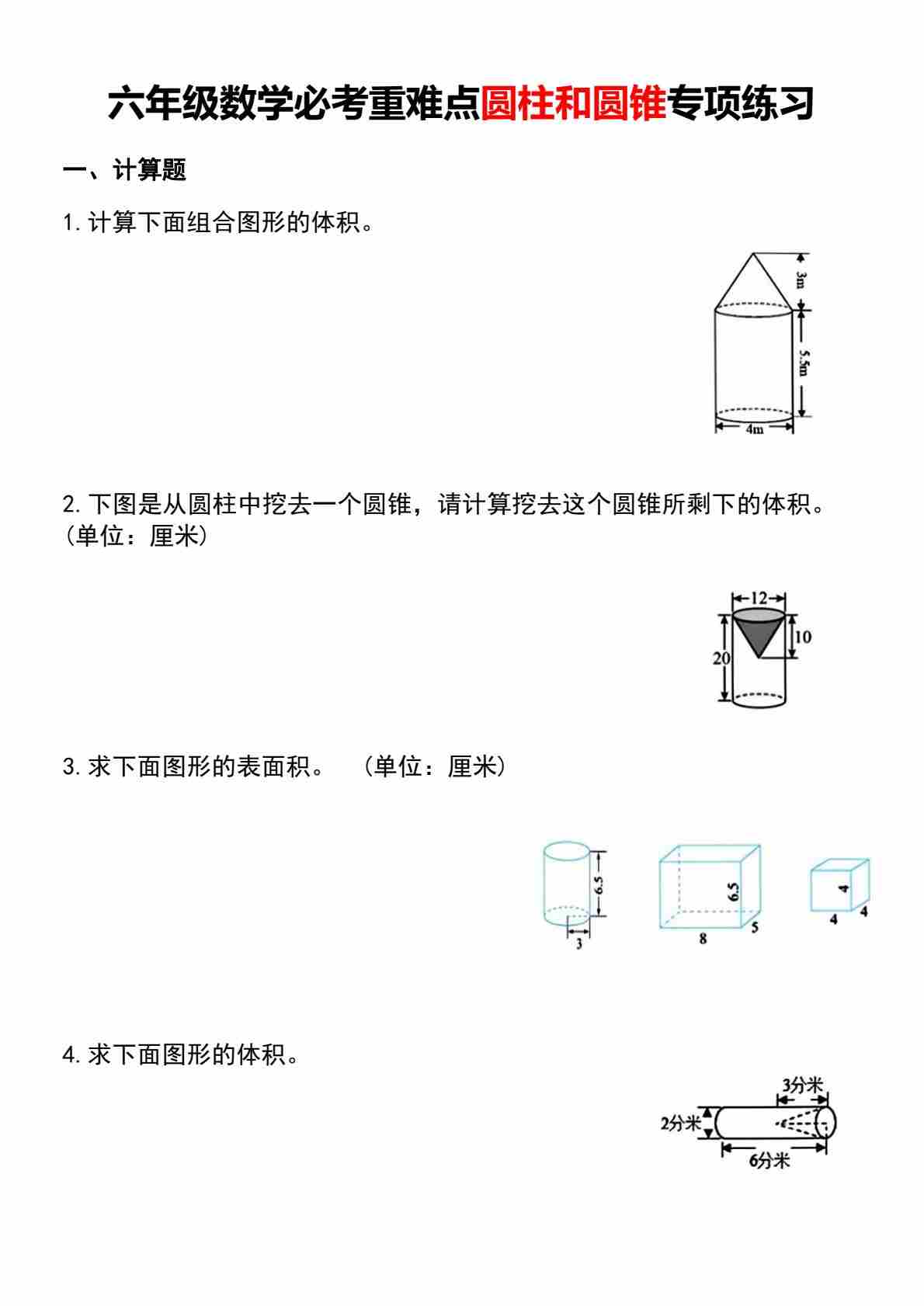 六 (下) 数学必考重难点圆柱和圆锥专项练习