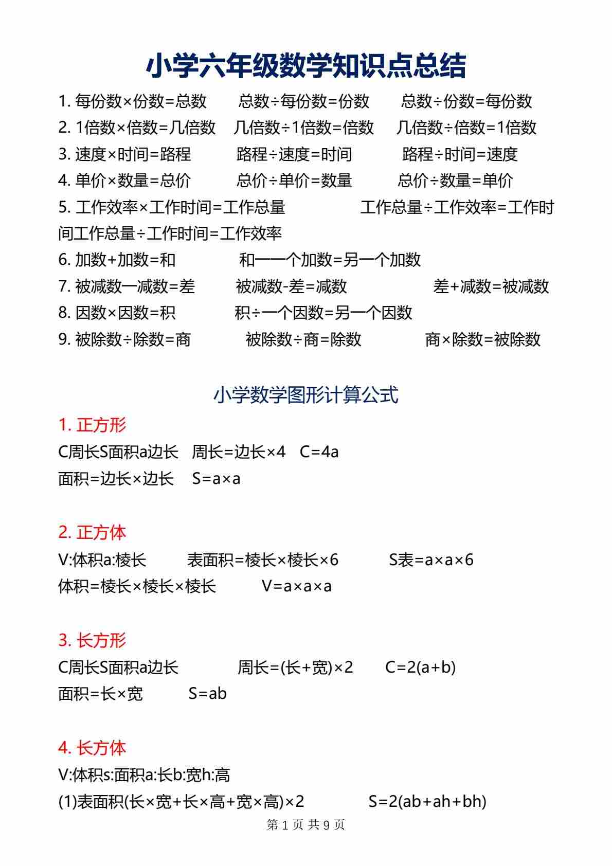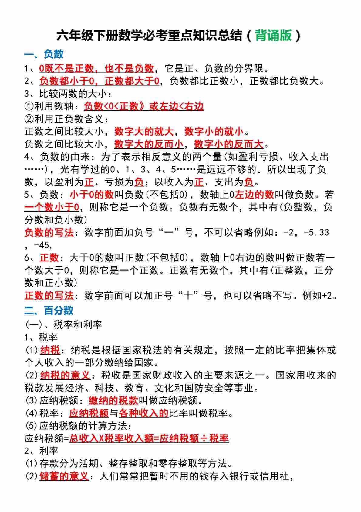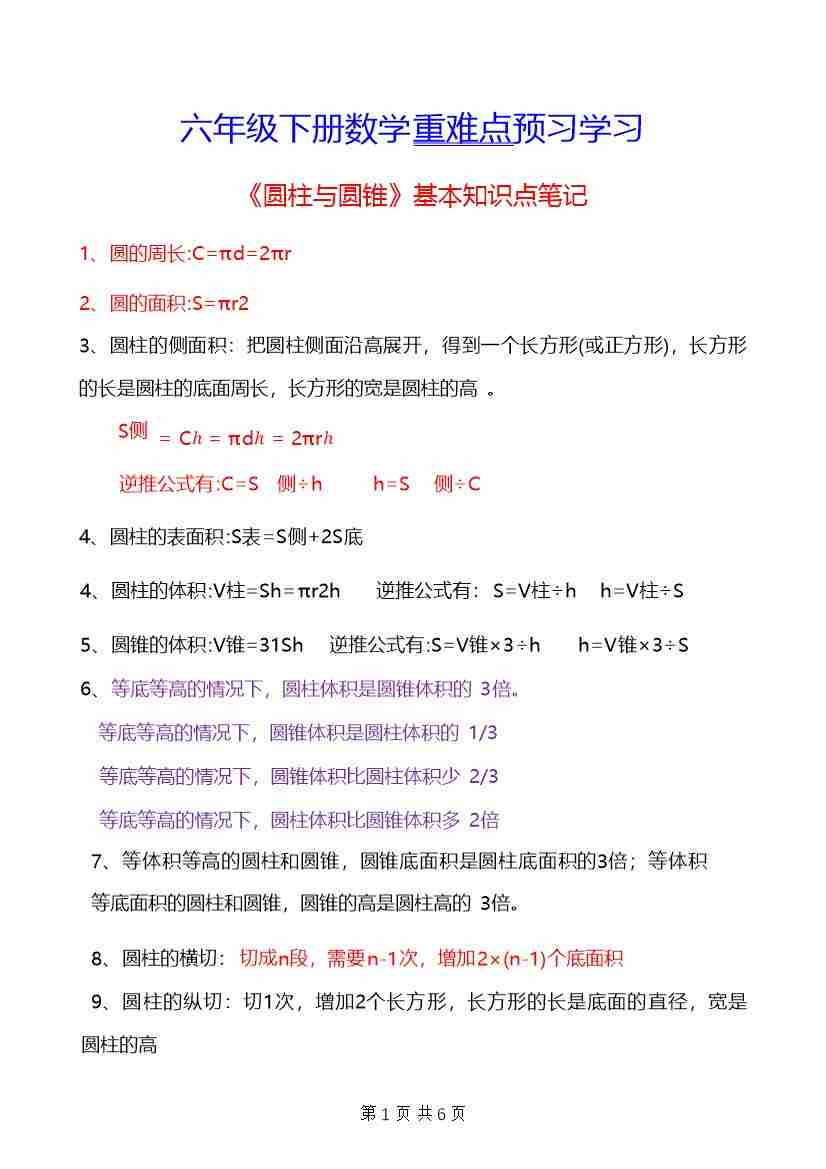 六(下)数学重点必背知识要点总结 (2)