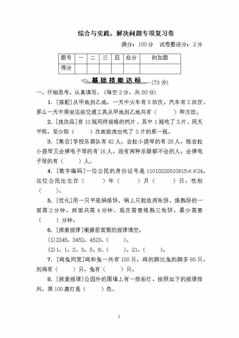 六(下)数学综合与实践、解决问题专项复习卷