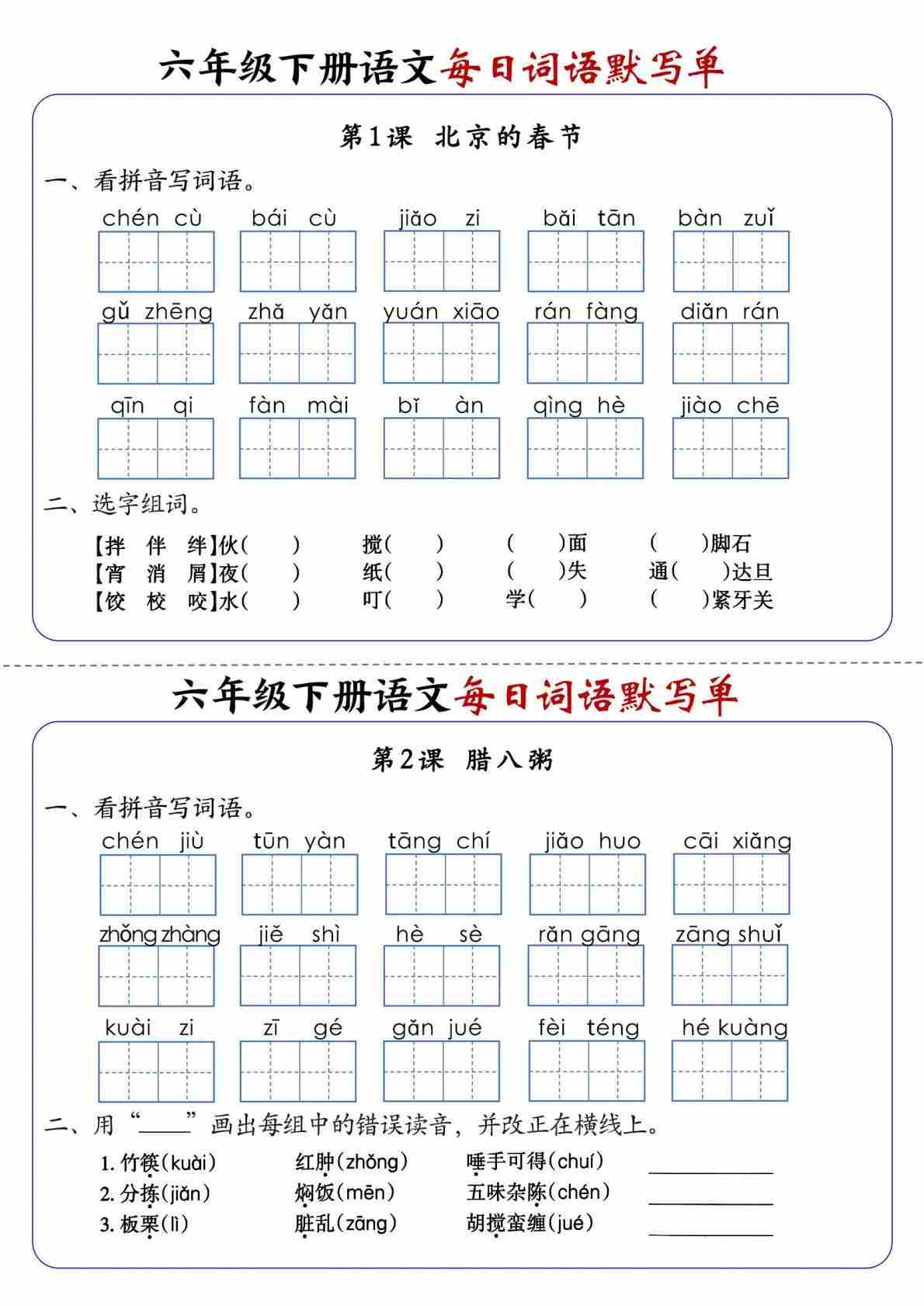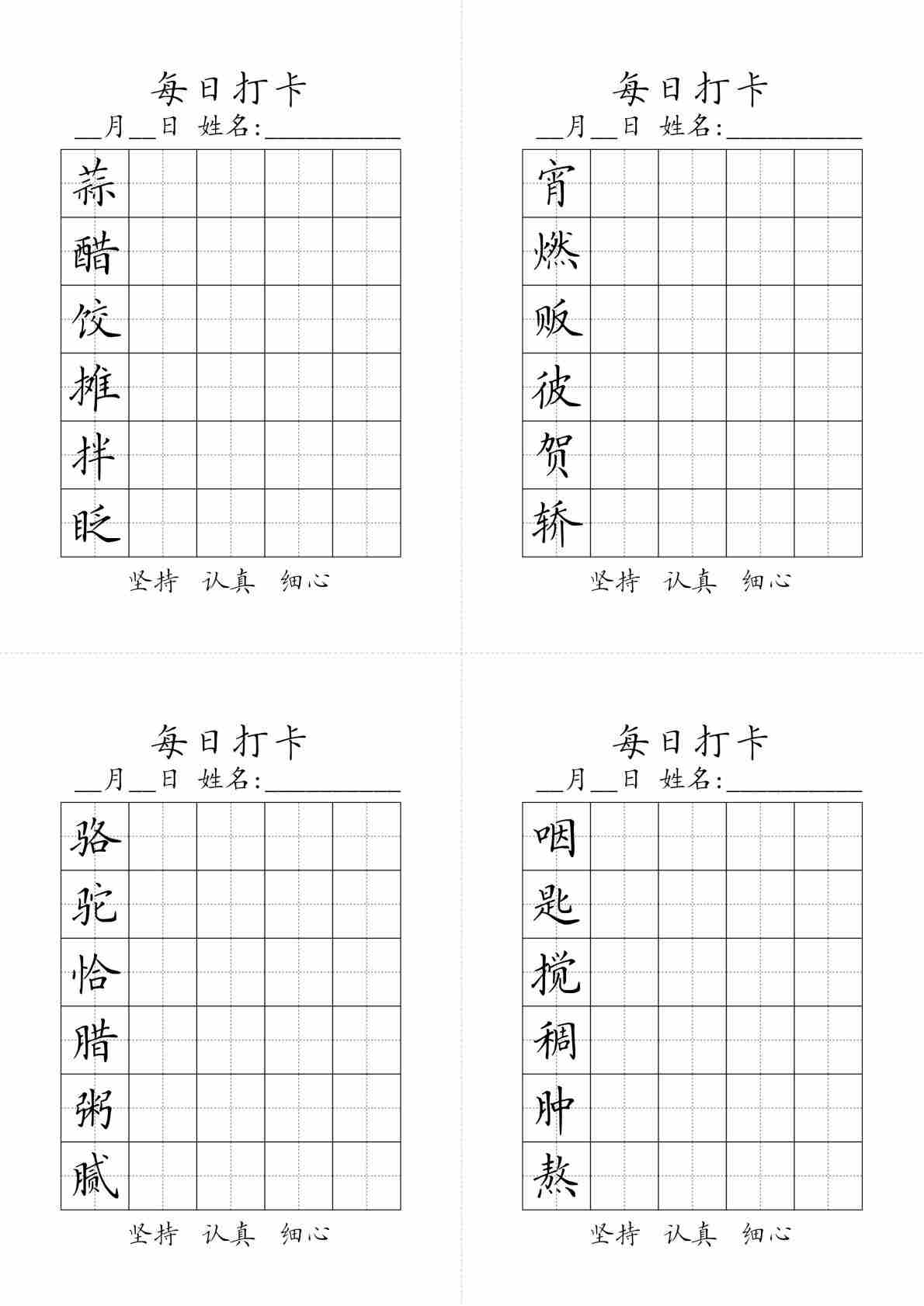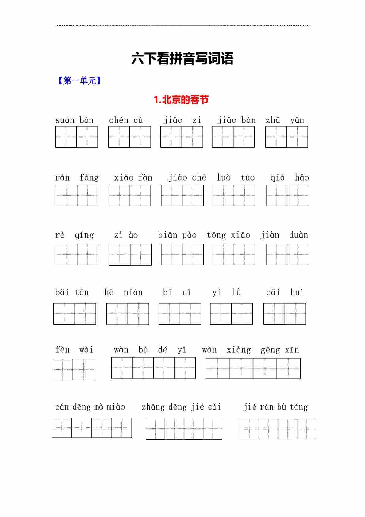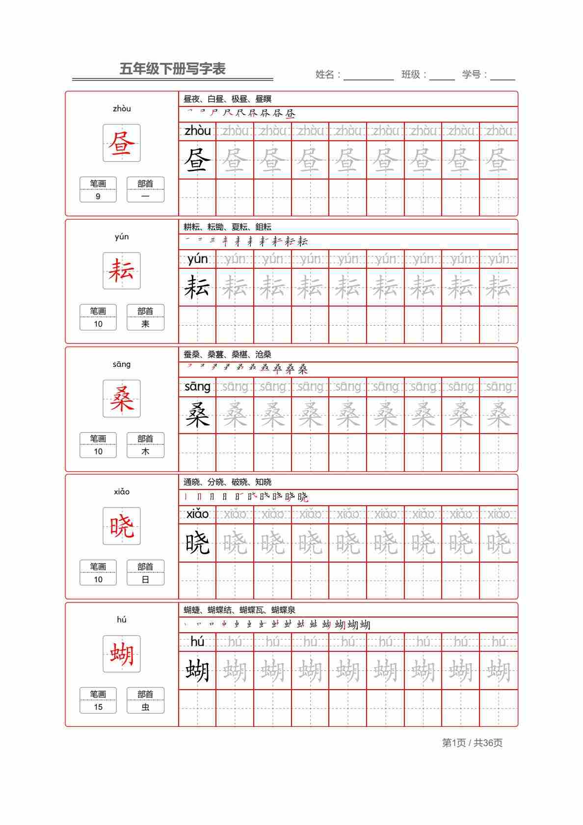 六(下)语文生字表120个,字帖10页(偏旁部首 笔顺 拼音)