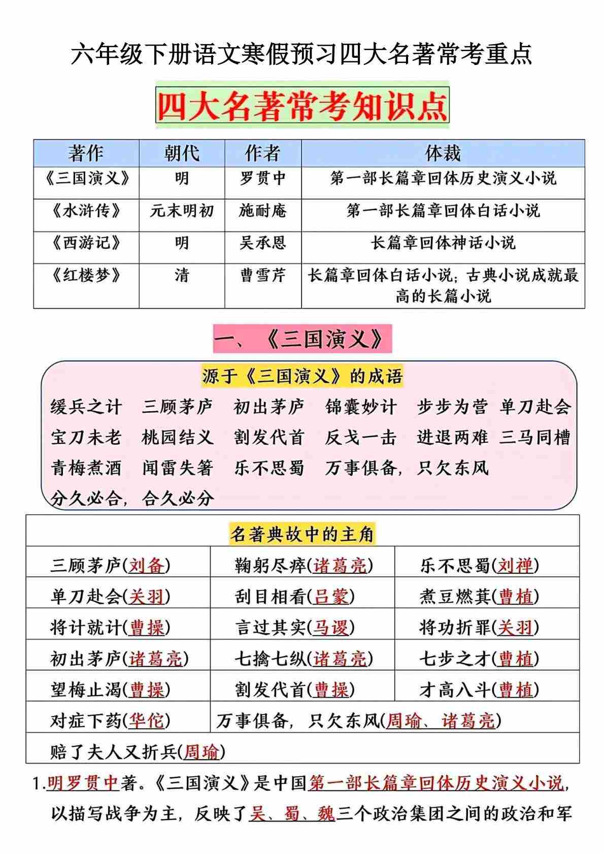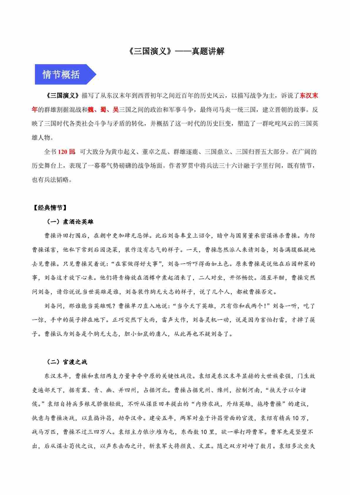 六(下)语文【课外四大名著阅读-三国演义真题讲解】