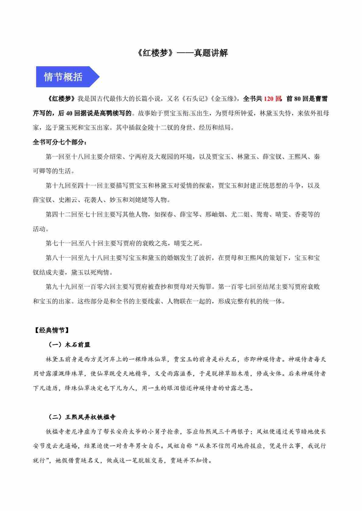 六(下)语文【课外四大名著阅读-红楼梦真题讲解】