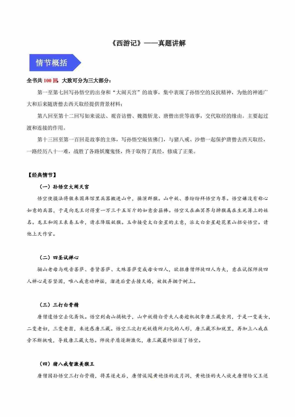 六(下)语文【课外四大名著阅读-西游记真题讲解】