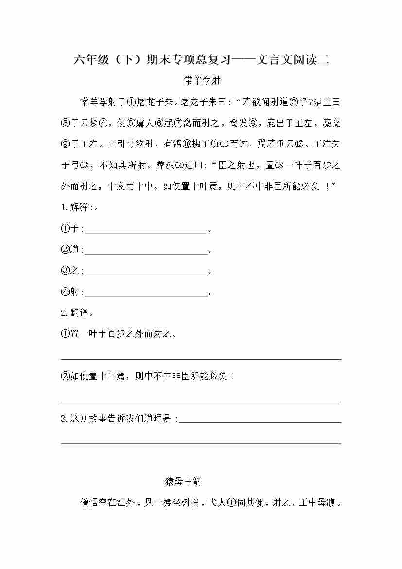 六下语文【文言文阅读专项训练】