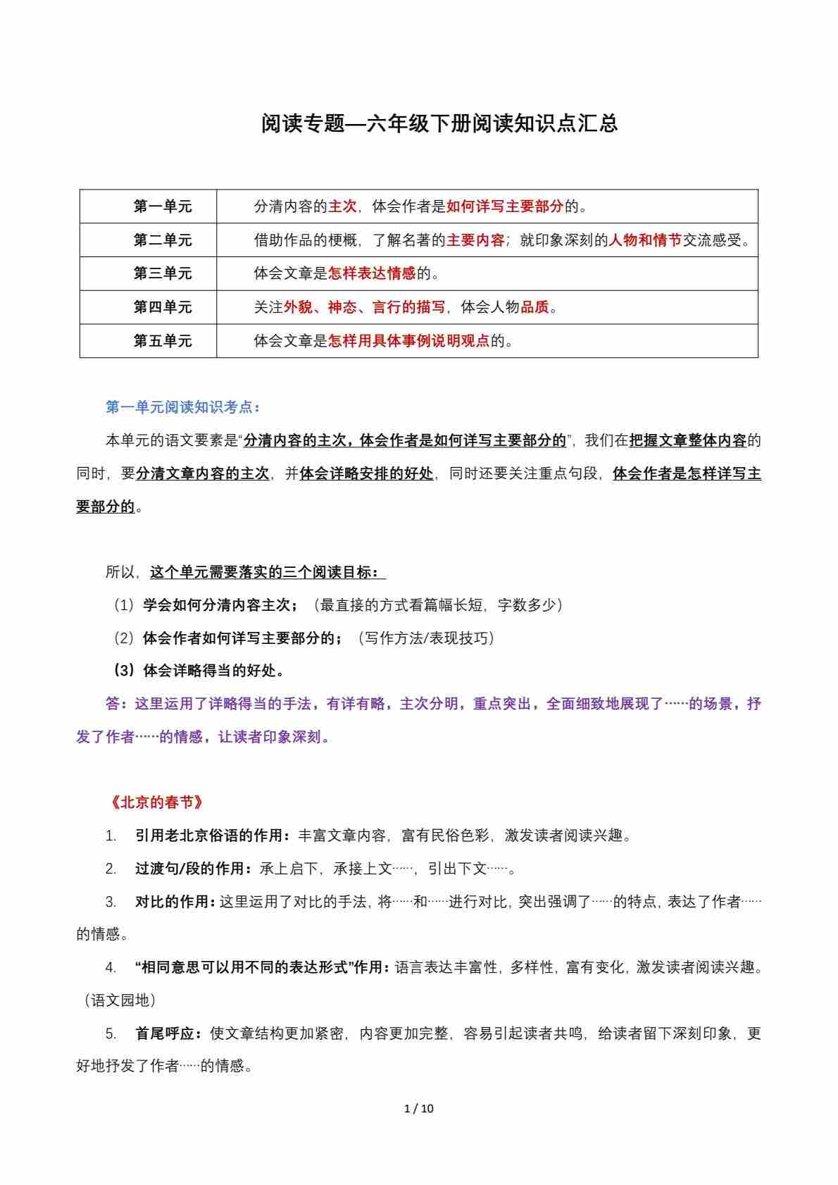 六下语文【阅读知识点汇总】