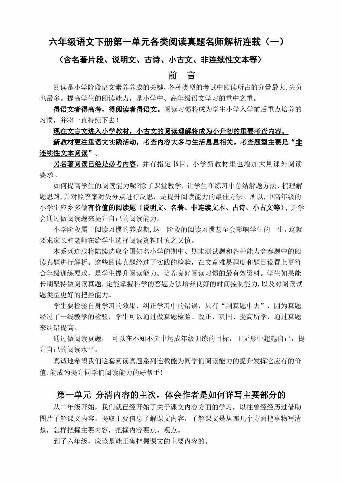 六(下)语文【课内阅读专项训练】
