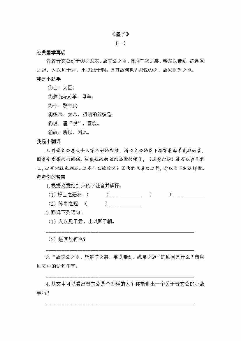 六(下)语文国学阅读之《墨子》《韩非子》