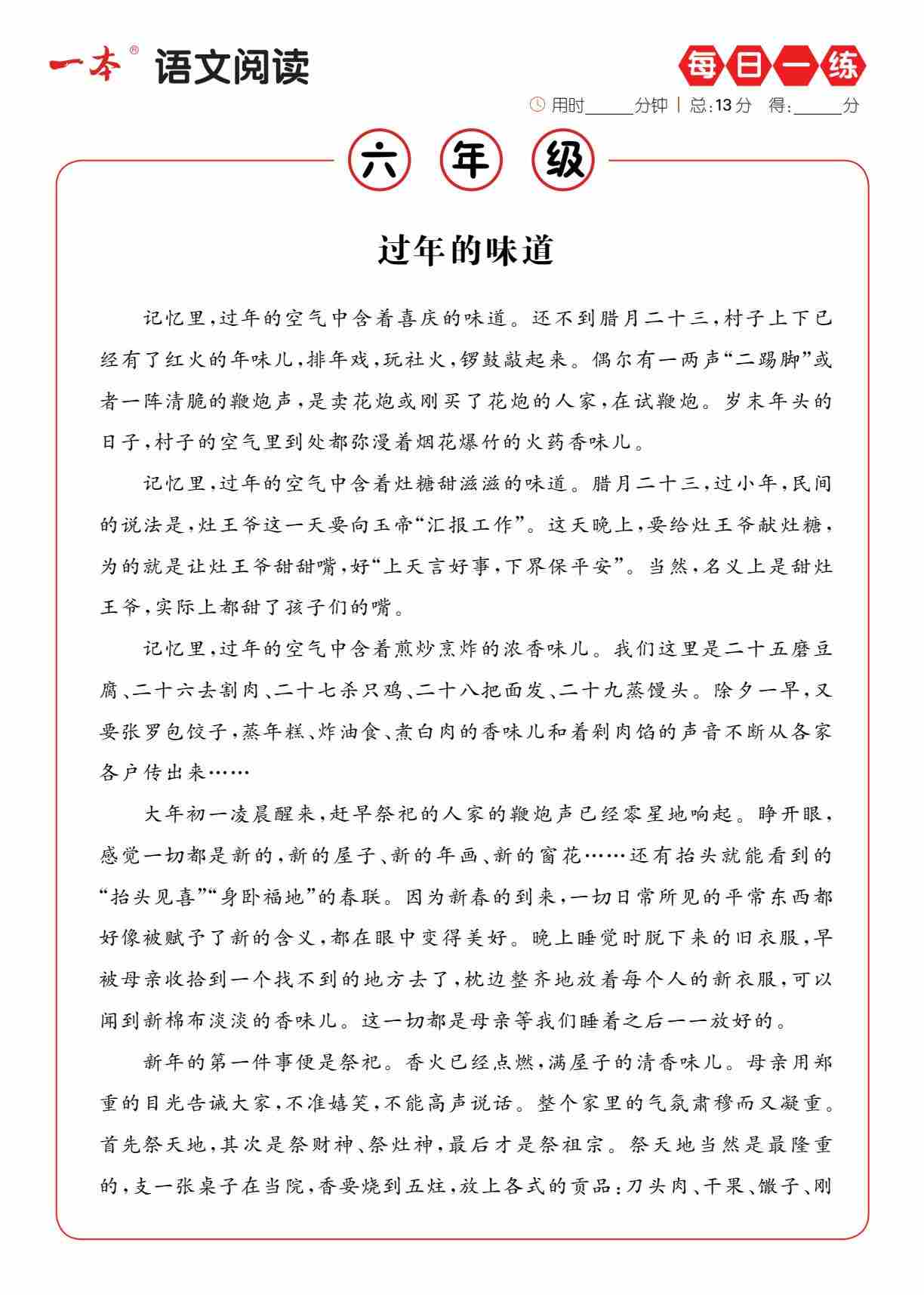 六(下)语文阅读每日一练A版1