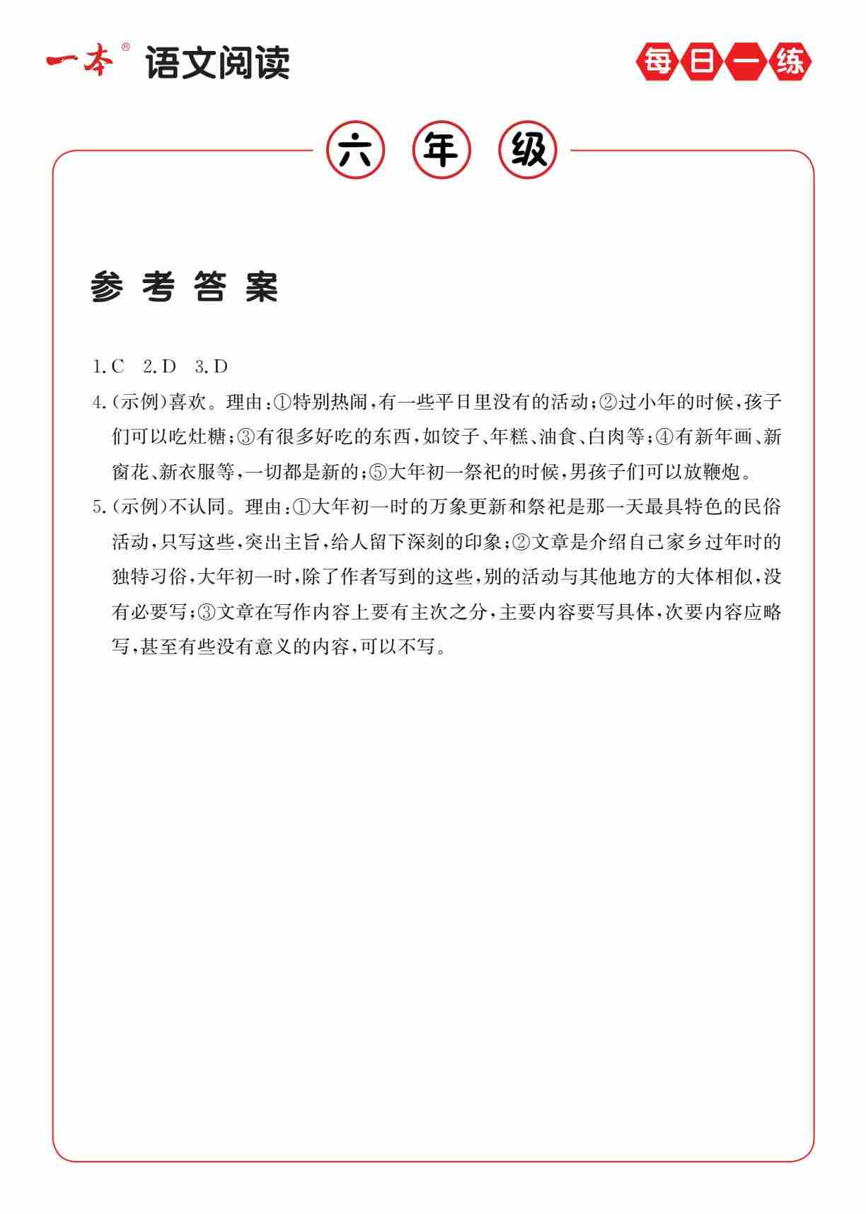 六(下)语文阅读每日一练A版答案